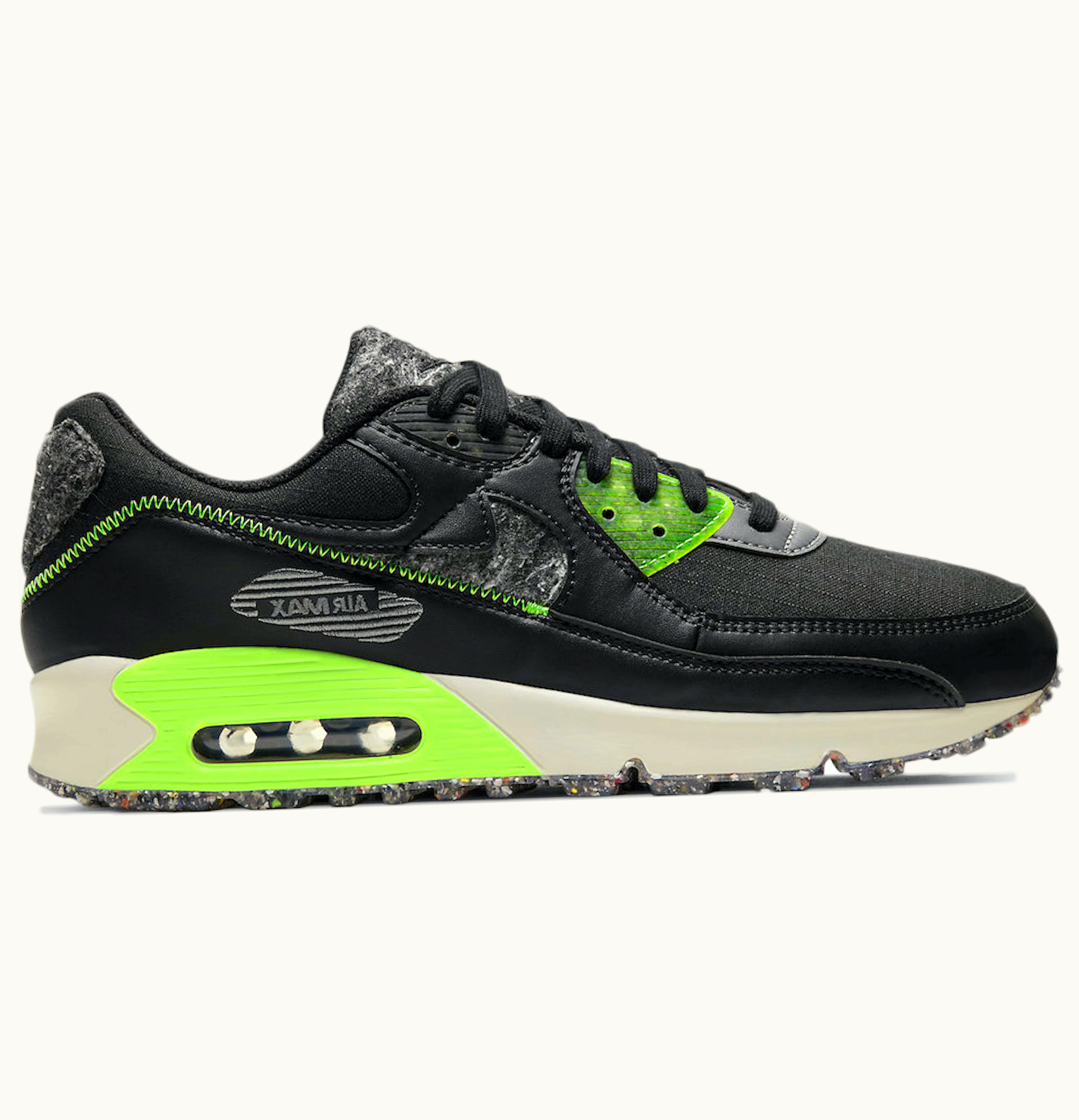 The Nike Air Max 90 M2Z2 Black Electric Green is a stylish and contemporary shoe that combines comfort, performance, and style. The upper is made of premium black leather and mesh, which provides breathability and durability. The shoe features bold electric green accents on the Nike swoosh, tongue, heel, and insole, adding a pop of color to the design. The signature Air Max midsole provides superior cushioning and impact protection, while the rubber outsole delivers excellent traction and durability. The shoe is designed with a lace-up closure, allowing a secure and customizable fit. With its sleek and modern style, the Nike Air Max 90 M2Z2 Black Electric Green is perfect for both active and casual wear. Whether you're hitting the gym, running errands or hanging out with friends, this shoe will keep you comfortable and stylish all day long.