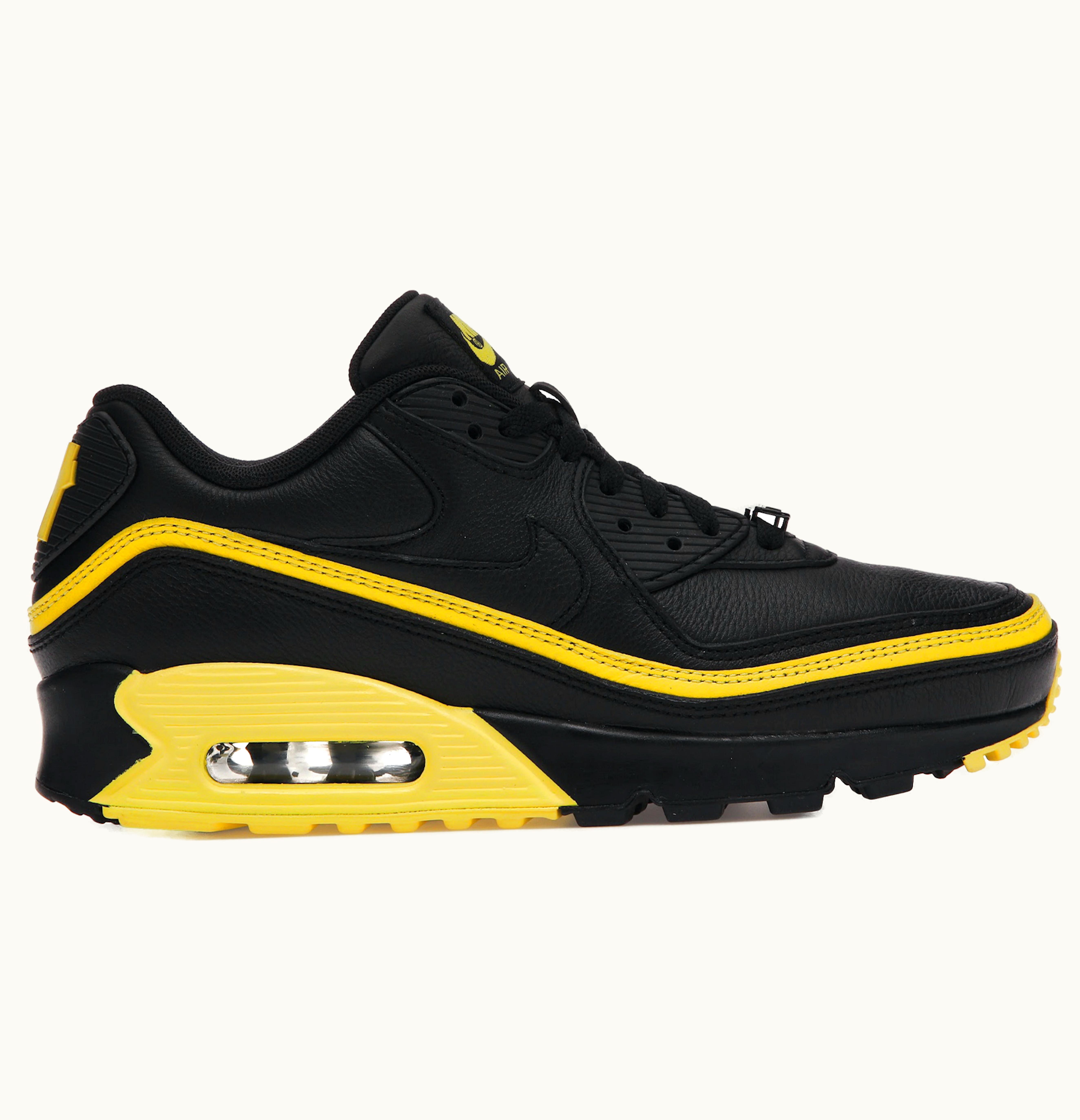 The Nike Air Max 90 Undefeated Black Optic Yellow is a stylish and comfortable sneaker designed for both sports and casual wear. This shoe features a black leather upper with yellow accents and the iconic Nike swoosh logo. It also features the Air Max technology for cushioning and support, and a durable rubber outsole for traction and stability. The shoe is designed with a lace-up closure system and a padded collar and tongue for added comfort. Overall, the Nike Air Max 90 Undefeated Black Optic Yellow is a versatile and fashionable shoe suitable for any occasion.