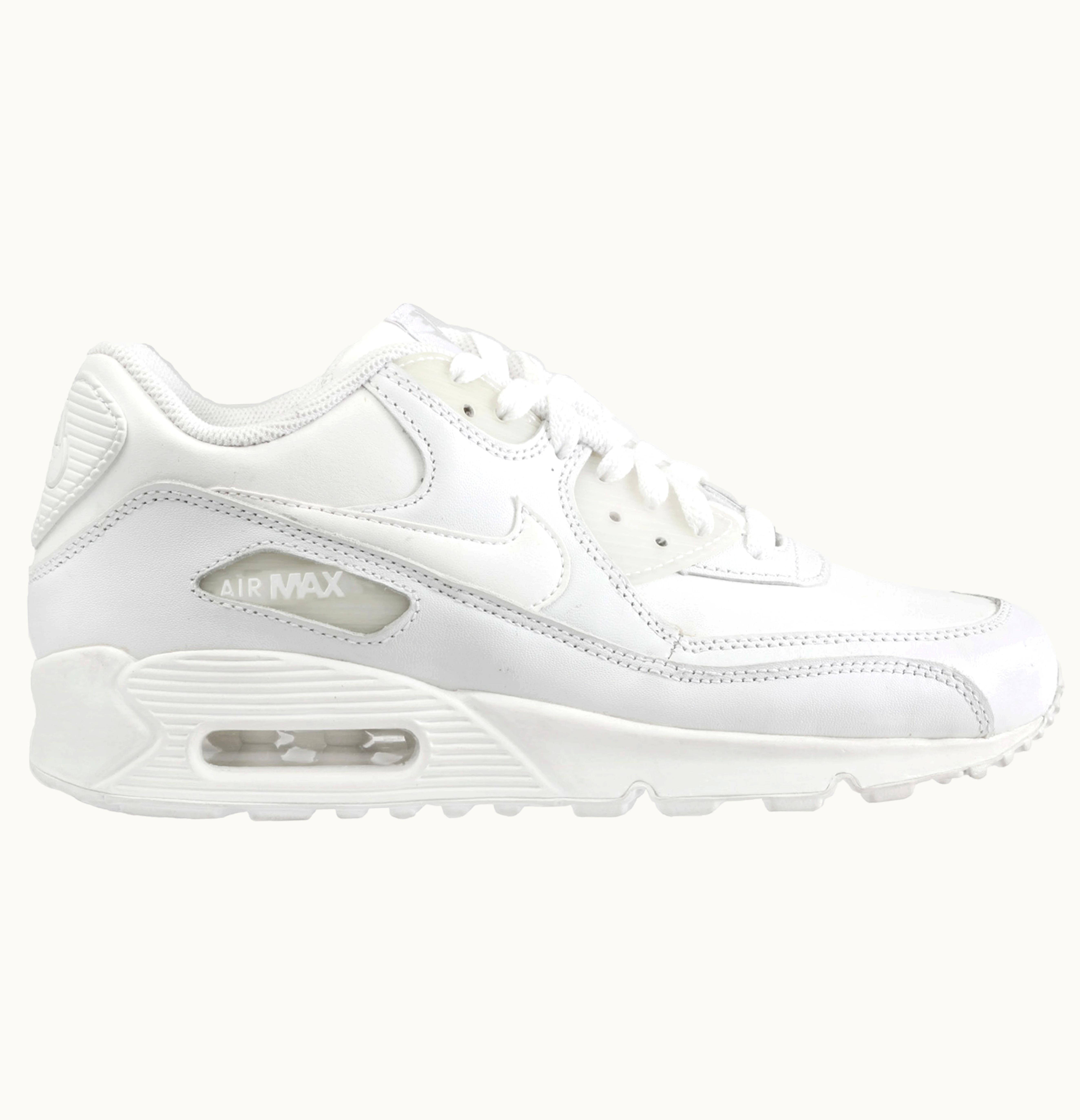 Nike Air Max 90 Leather Triple White GS | GLINT