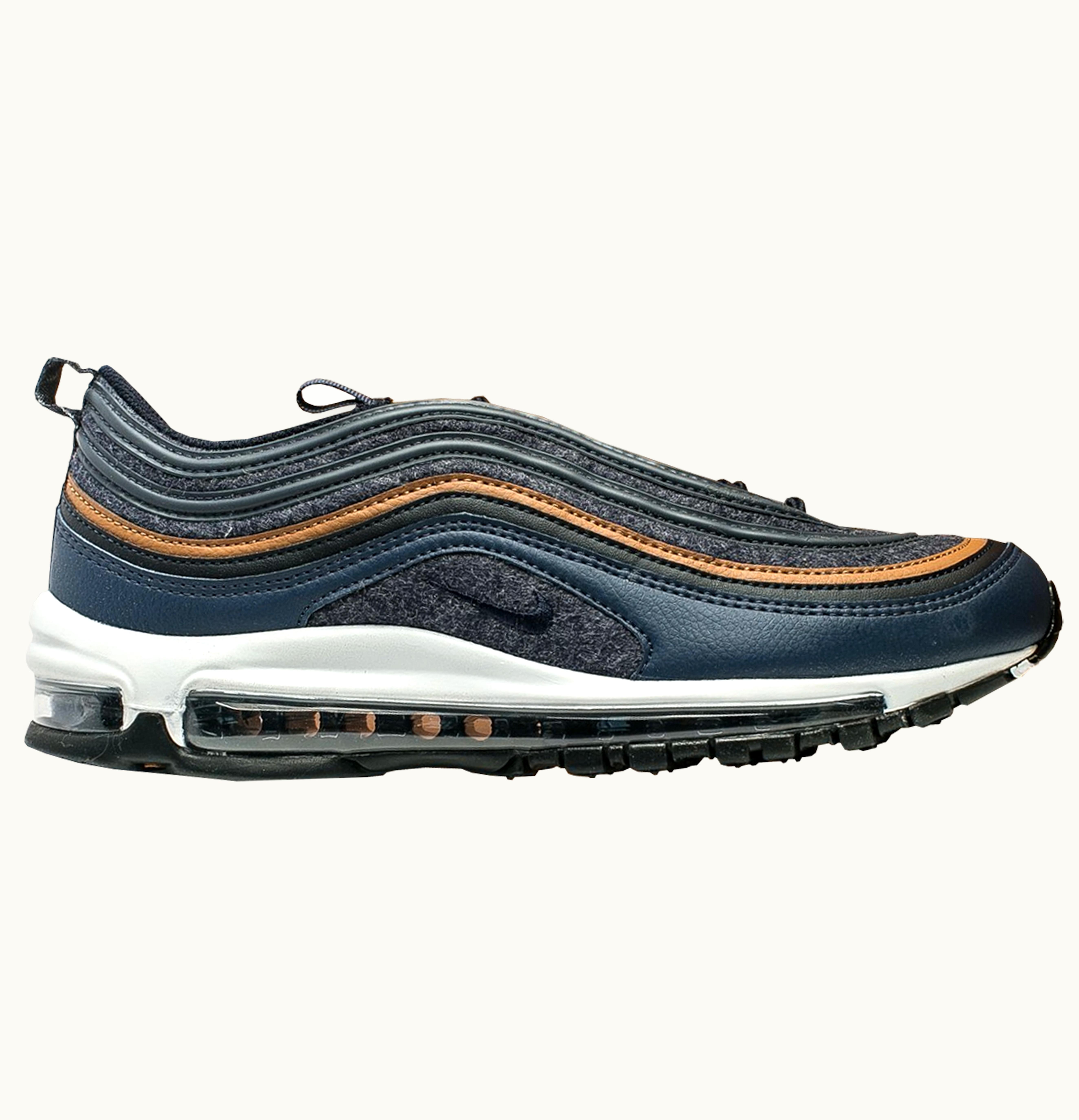 The Nike Air Max 97 Wool Thunder Blue is a stylish and comfortable sneaker designed for daily wear. It features a sleek and streamlined design with a mix of materials, including wool and leather, in shades of blue and gray. The iconic Air Max cushioning technology adds lightweight support and comfort while the rubber sole provides excellent traction on various surfaces. With its unique design and superior comfort, the Nike Air Max 97 Wool Thunder Blue is the perfect addition to any sneaker collection.