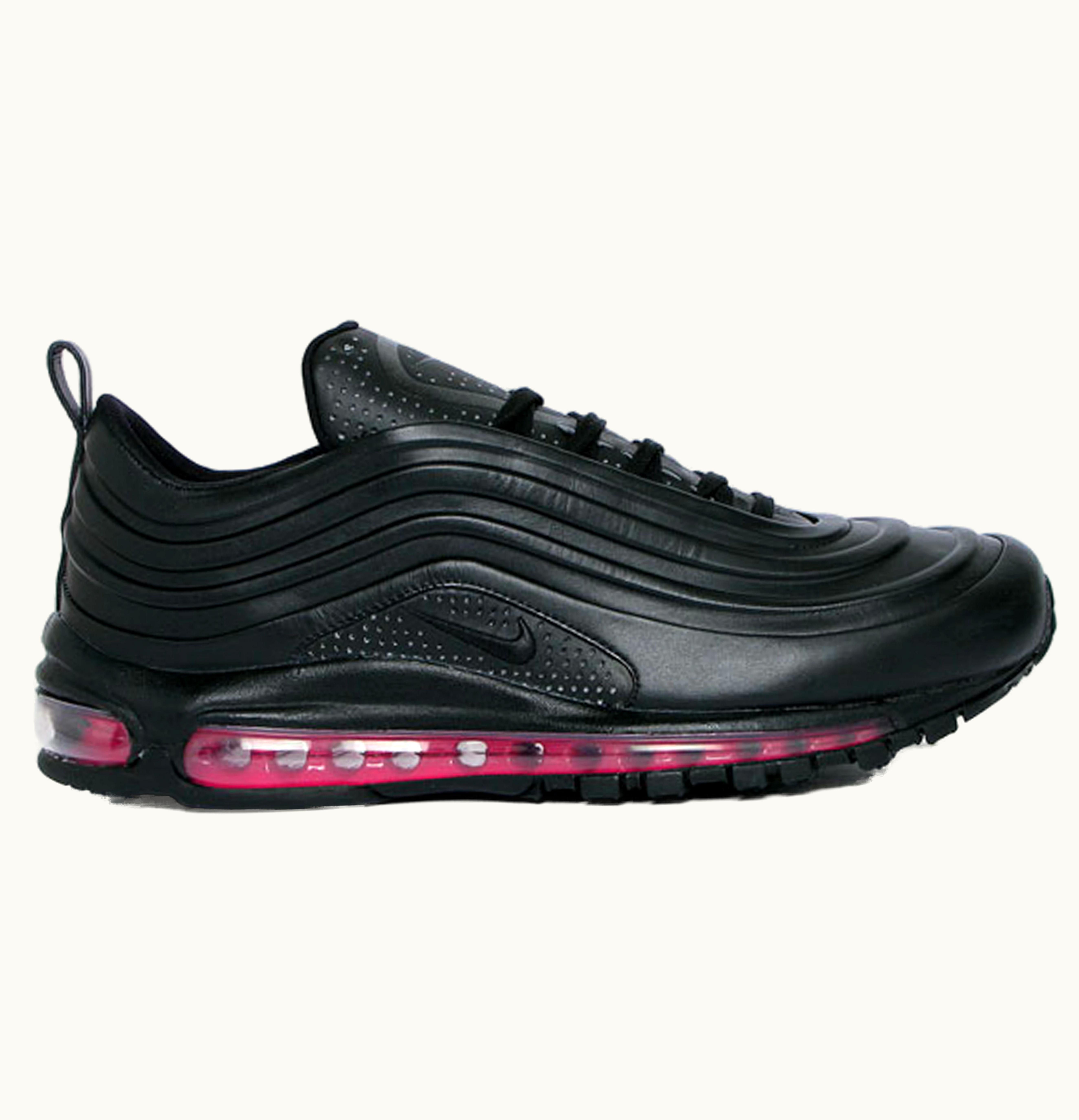 The Nike Air Max 97 Lux Black Pink Flash is a stylish and comfortable sneaker that is perfect for anyone who loves a unique design. The upper is made of black leather and features reflective accents that give it a sleek and modern look. The mesh underlays improve breathability and comfort, making these sneakers perfect for long days on the go. The iconic Air-Sole unit provides responsive cushioning, making them perfect for those who are always on their feet. The outsole has a non-marking design that offers excellent traction on any surface, making this sneaker perfect for running, walking, or simply lounging around. The pink flash detailing adds a pop of color to the shoe, making it stand out from the crowd. The Nike Air Max 97 Lux Black Pink Flash is perfect for anyone looking for a comfortable, fashionable sneaker that they can wear anywhere.