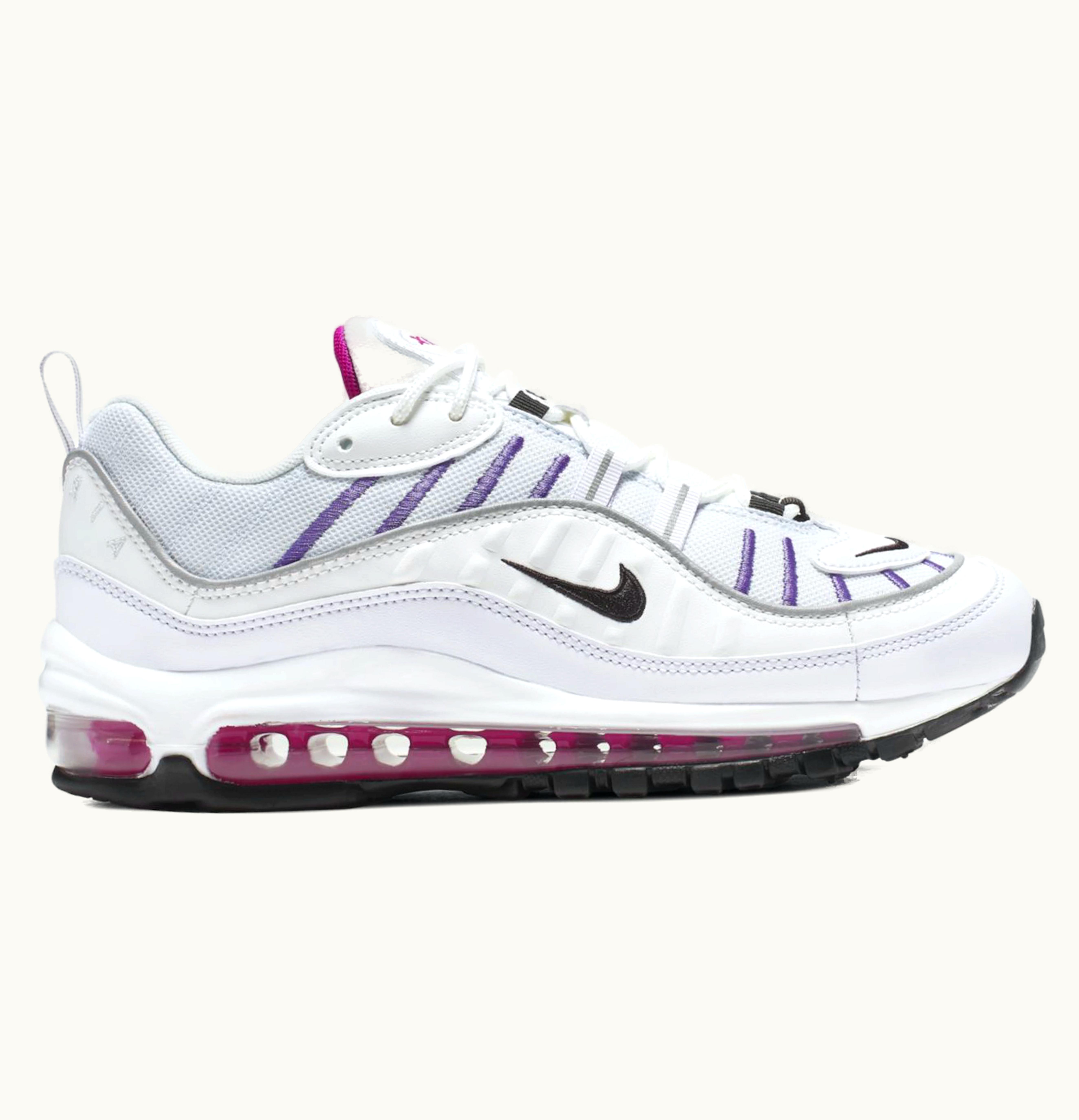 The Nike Air Max 98 Football Grey (W) is a women's athletic shoe designed for comfort and style during all-day wear. The upper features a sleek gray and white colorway with accents of neon green, adding a pop of detail to the sleek design. The shoe is constructed with premium leather and synthetic materials that guarantee durability and ensure the perfect fit. The iconic Air Max cushioning units in the sole provide superior shock absorption and support, giving you a comfortable fit all day long. The outsole features a durable rubber material that ensures optimal traction and grip for any activity. Whether you're running errands or hitting the gym, the Nike Air Max 98 Football Grey (W) is the perfect shoe to keep your feet comfortable and stylish.