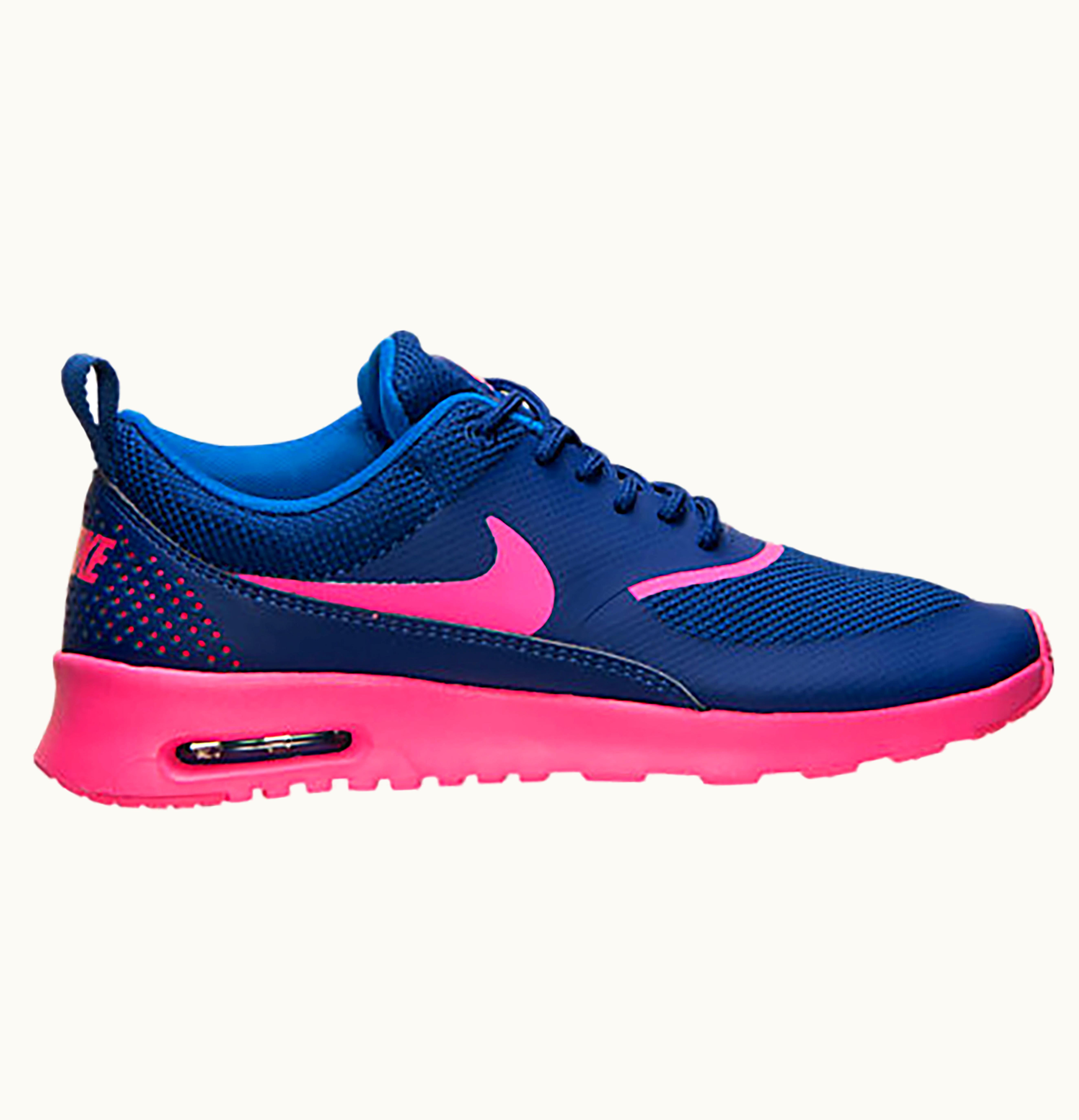 The Nike Air Max Thea Deep Royal Blue Hyper Pink (W) is a women's running shoe that delivers a stylish and comfortable fit. It features a lightweight and breathable upper that provides a snug and supportive feel for the foot. The shoe's stylish colorway of deep royal blue and hyper pink gives it a bold and eye-catching look. The Nike Air Max Thea Women's Running Shoe has a visible Air Max unit in the heel for ultimate cushioning and impact protection. Its Phylon midsole and Solarsoft sockliner offer additional cushioning for a smooth ride. The rubber outsole provides excellent traction on various surfaces, making this shoe great for both indoor and outdoor use. Overall, the Nike Air Max Thea Deep Royal Blue Hyper Pink (W) is a versatile and comfortable shoe that combines style and function for the ultimate running experience.