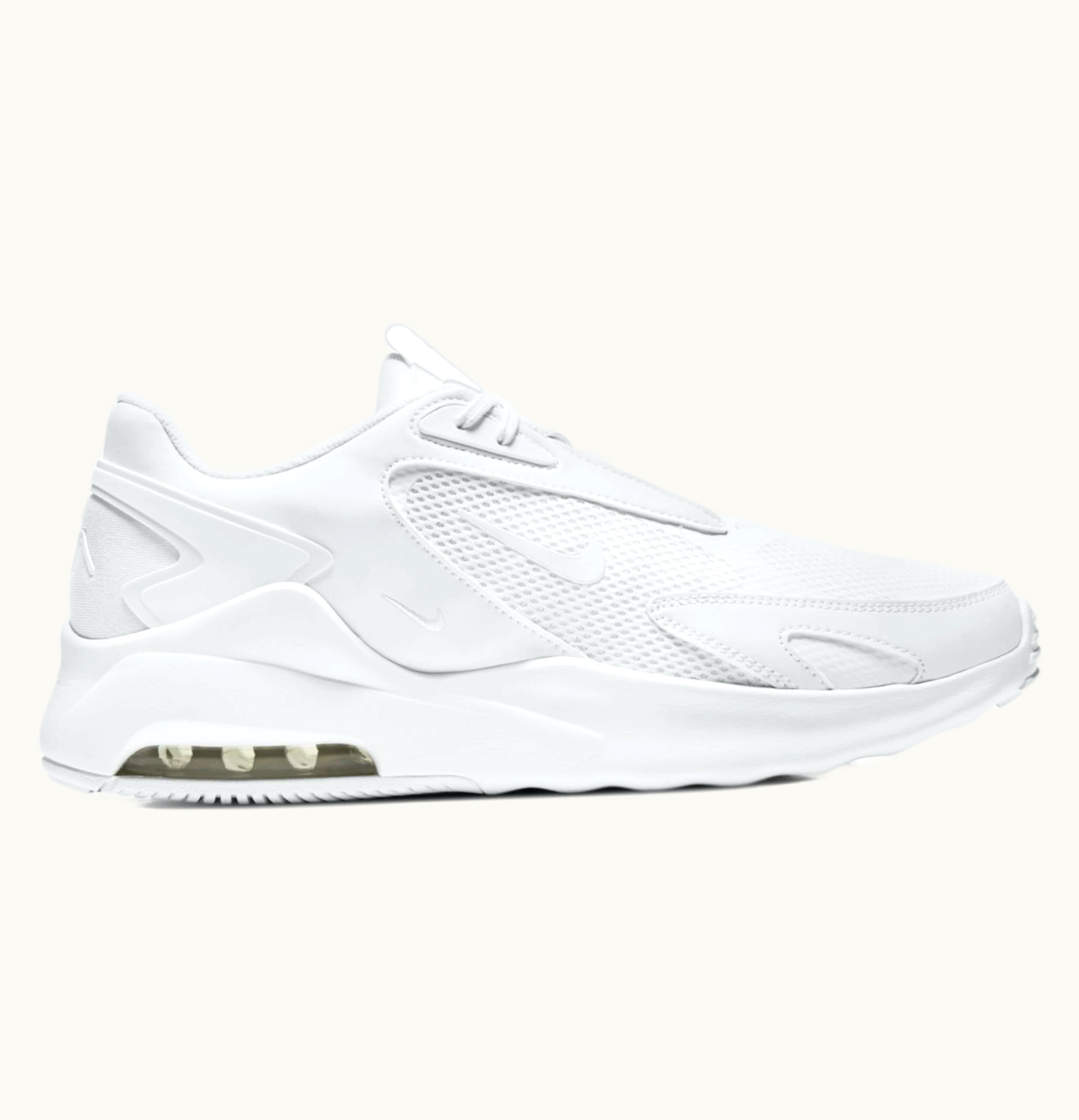 The Nike Air Max Bolt Triple White is a stylish and sleek sneaker designed with comfort and durability in mind. The upper features a white mesh and synthetic leather combination with subtle Nike branding on the tongue, heel, and sides. The cushioning technology of the Air Max unit in the heel provides ample shock absorption and support for your feet. The outsole is made of durable rubber to provide excellent traction on a variety of surfaces. The Triple White colorway gives this shoe a clean and sophisticated look, making it a perfect addition to any wardrobe.