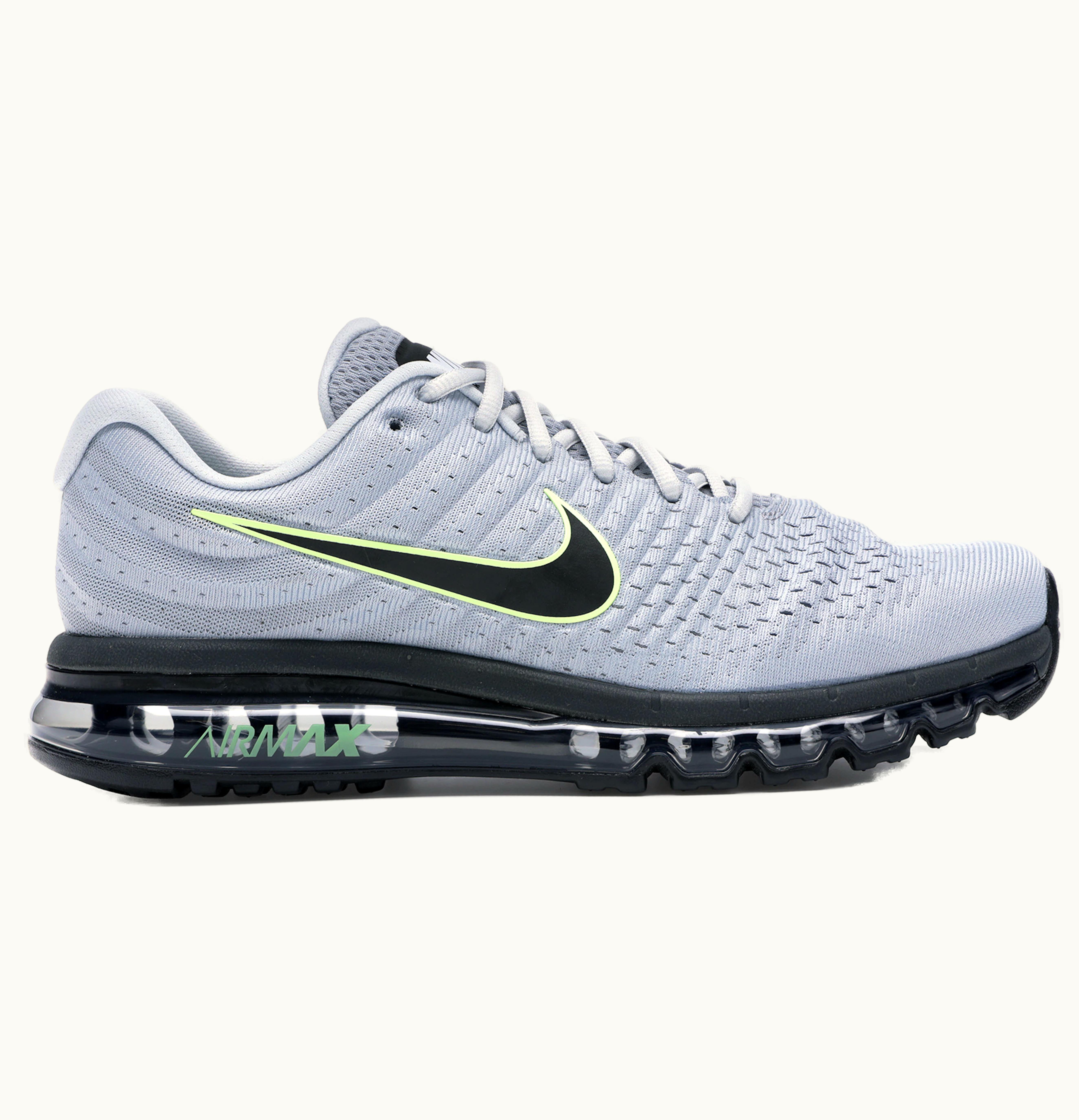 The Nike Air Max 2017 Wolf Grey Black Volt is a premium performance shoe designed for athletes who demand the best. It features a sleek, yet stylish, wolf grey and black colorway with eye-catching volt accents that will turn heads on and off the field. The shoe also has a breathable mesh upper that provides maximum airflow to keep your feet cool and comfortable throughout your workout. The full-length Max Air unit in the sole offers exceptional cushioning and support, while the rubber outsole offers the traction you need to tackle any surface. With its combination of style and performance, the Nike Air Max 2017 Wolf Grey Black Volt is the perfect shoe for anyone looking to take their game to the next level.