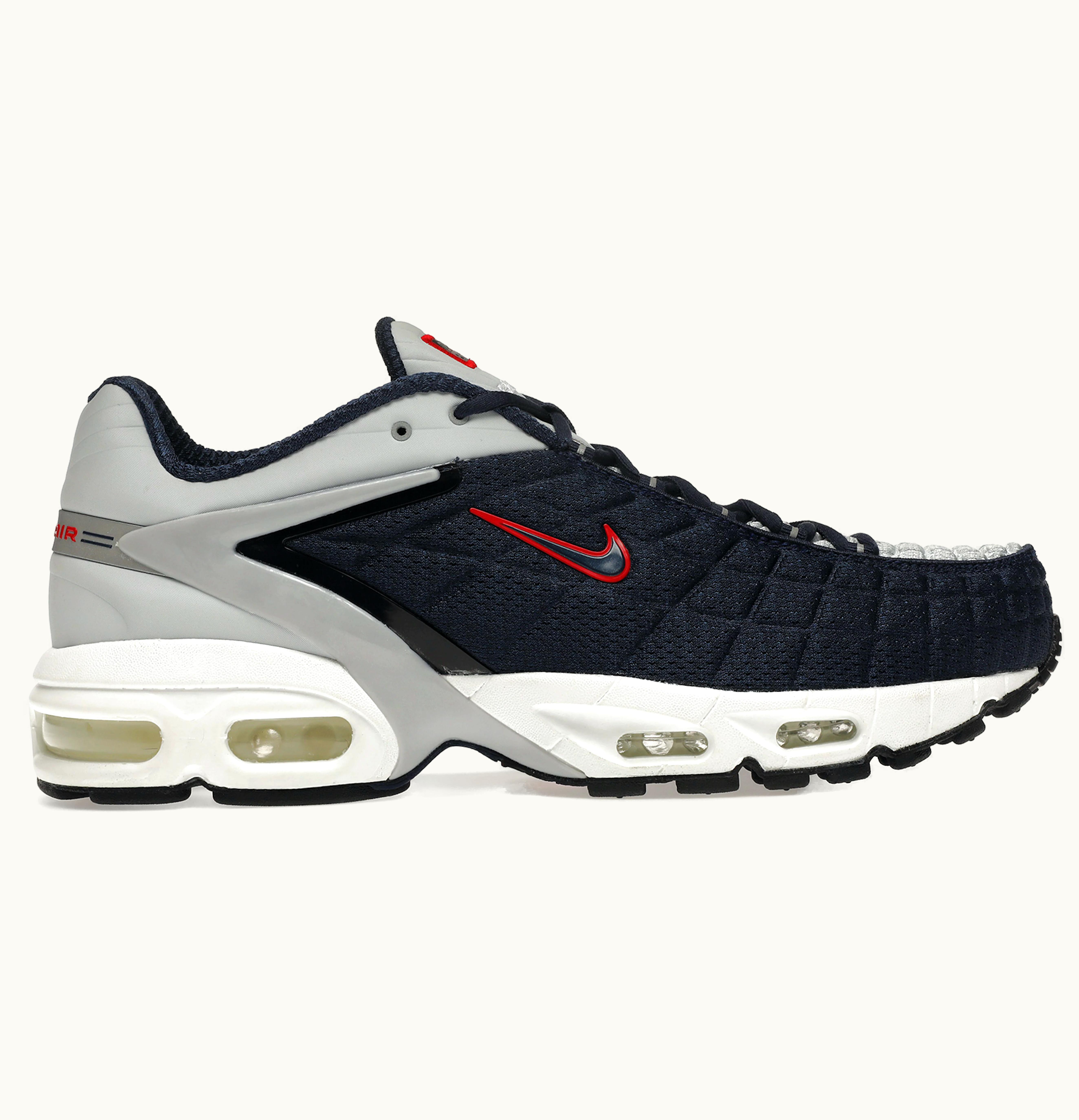 The Nike Air Max Tailwind 5 Midnight Navy is a stylish and comfortable athletic shoe designed for men. It features a midnight navy and white colorway with a breathable mesh upper for increased airflow and synthetic overlays for added support. The Air Max technology in the heel provides responsive cushioning and impact absorption, while the Phylon midsole offers lightweight and durable cushioning. The rubber outsole with waffle pattern provides excellent traction on a variety of surfaces, making it ideal for running and other high-intensity activities. This shoe also features a lace-up closure for a secure and personalized fit.