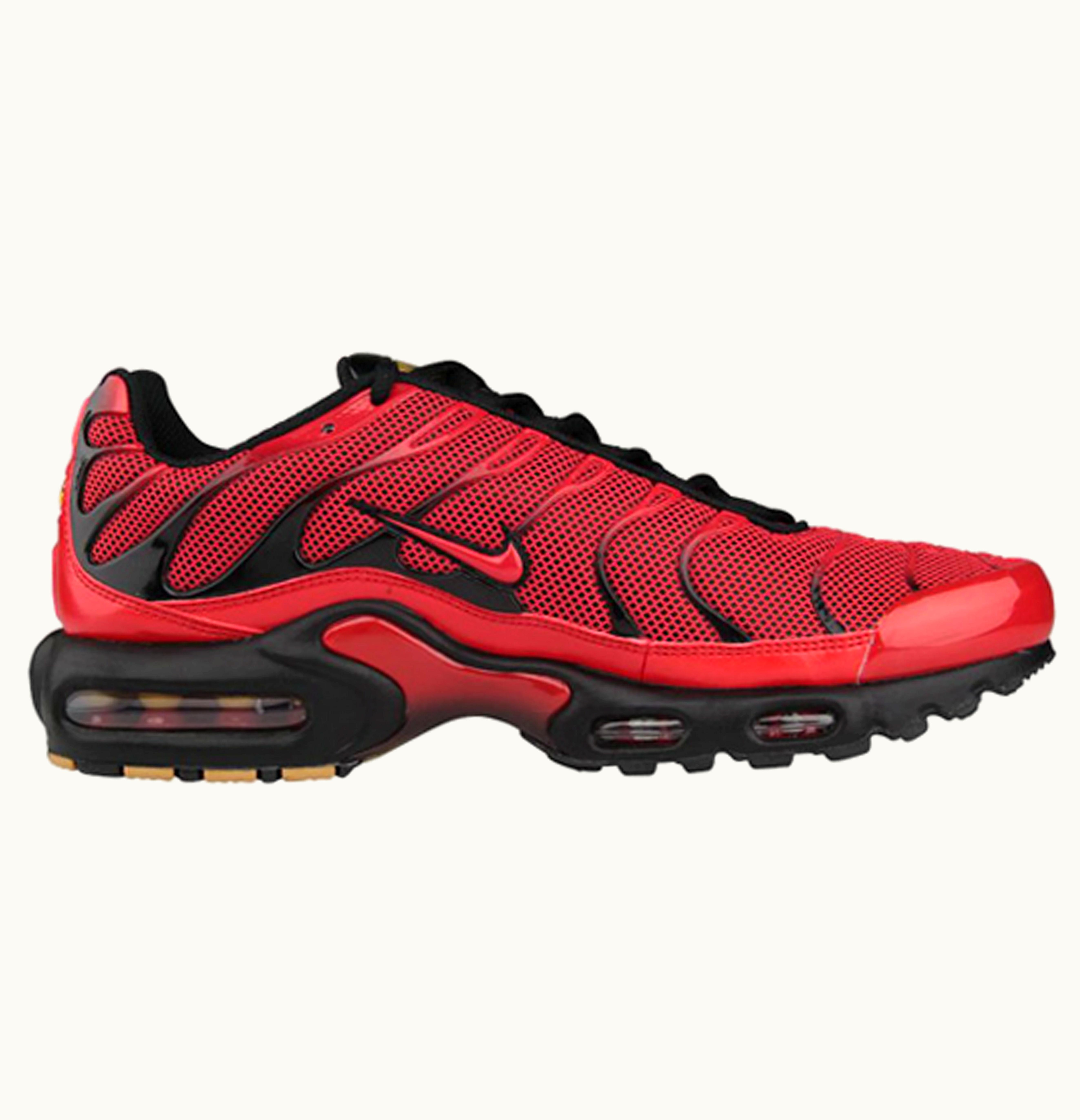 The Nike Air Max Plus Diablo Red is a stylish and comfortable footwear that features a bold red colorway that is sure to turn heads. It boasts a durable and lightweight construction, with a breathable mesh upper and supportive overlays that provide a secure fit. The shoes also feature a cushioned midsole with Nike's signature Air Max technology that offers responsive and comfortable cushioning, making them ideal for everyday wear or intense athletic activity. These shoes are finished off with a durable rubber outsole that ensures excellent traction on a variety of surfaces. Overall, the Nike Air Max Plus Diablo Red is a high-quality and stylish footwear that offers both comfort and performance.