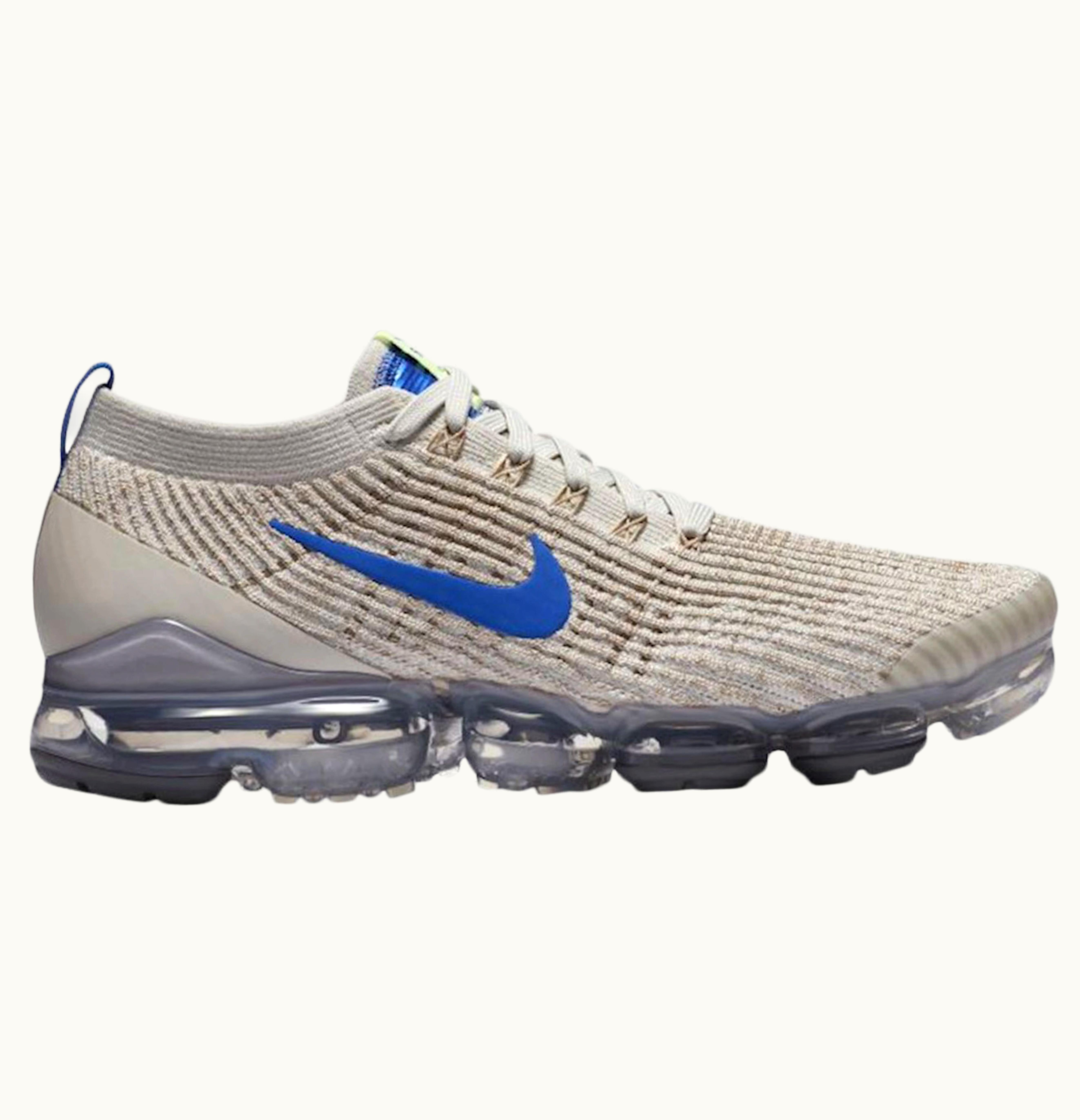 Nike Air VaporMax Flyknit 3 Light Bone Game Royal Khaki String | GLINT