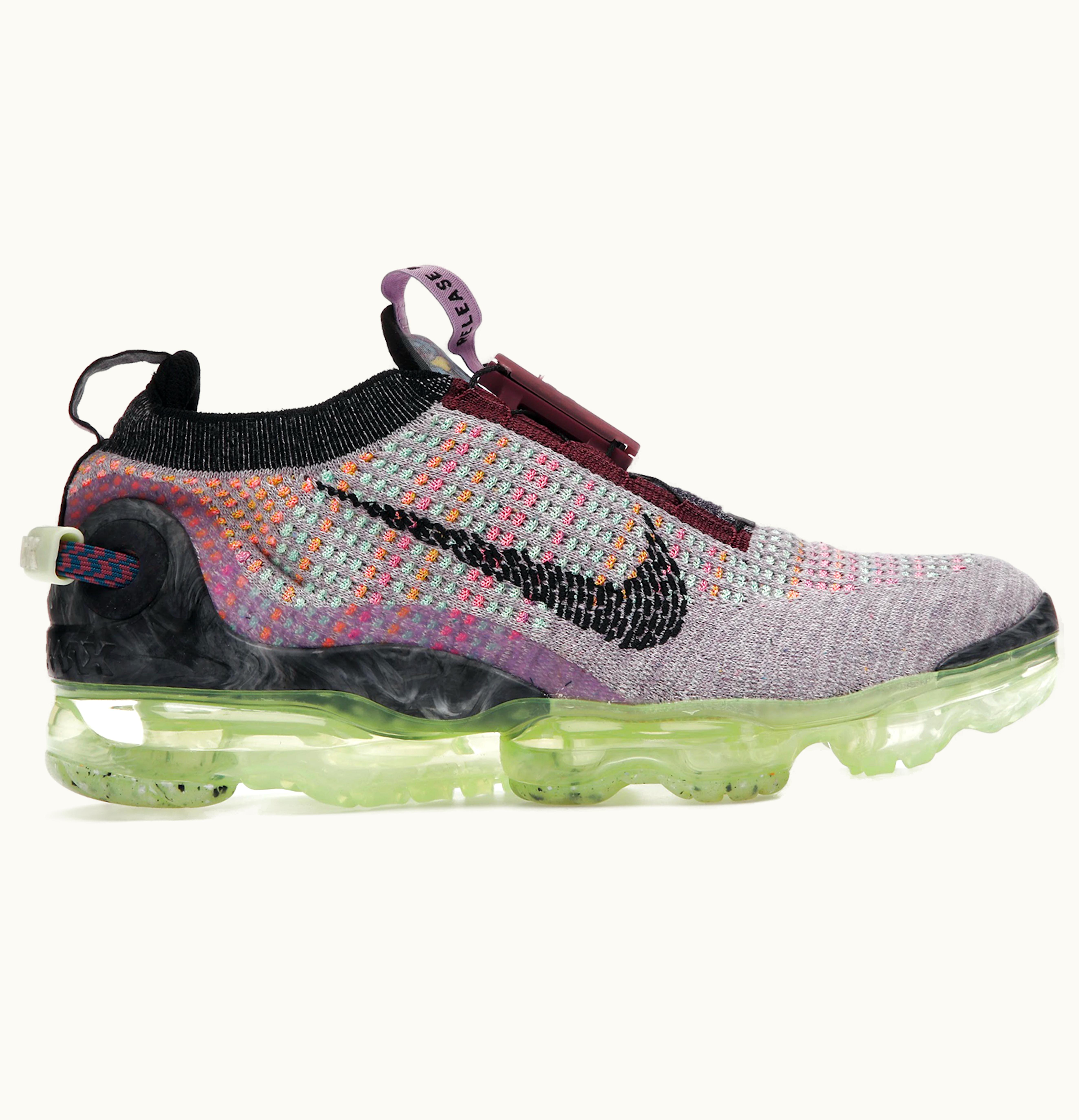 The Nike Air VaporMax 2020 Flyknit VIolet Ash Multi-Color (W) is a women's running shoe that offers the perfect combination of style, comfort, and performance. The shoe features an innovative Flyknit upper that conforms to your foot for a snug, custom-like fit. The FlyEase technology adds convenience to this high-performance design. The shoe's VaporMax air sole unit provides maximum cushioning and responsiveness, allowing you to run with ease and comfort. The brilliant violet ash multi-color design adds a bold streak of style to your running attire. The shoe is also eco-friendly, made from sustainable materials that reduce waste to make a better impact on the environment. Overall, the Nike Air VaporMax 2020 Flyknit VIolet Ash Multi-Color is a premium shoe that delivers enhanced performance, comfort, style, and sustainability for women's runners.