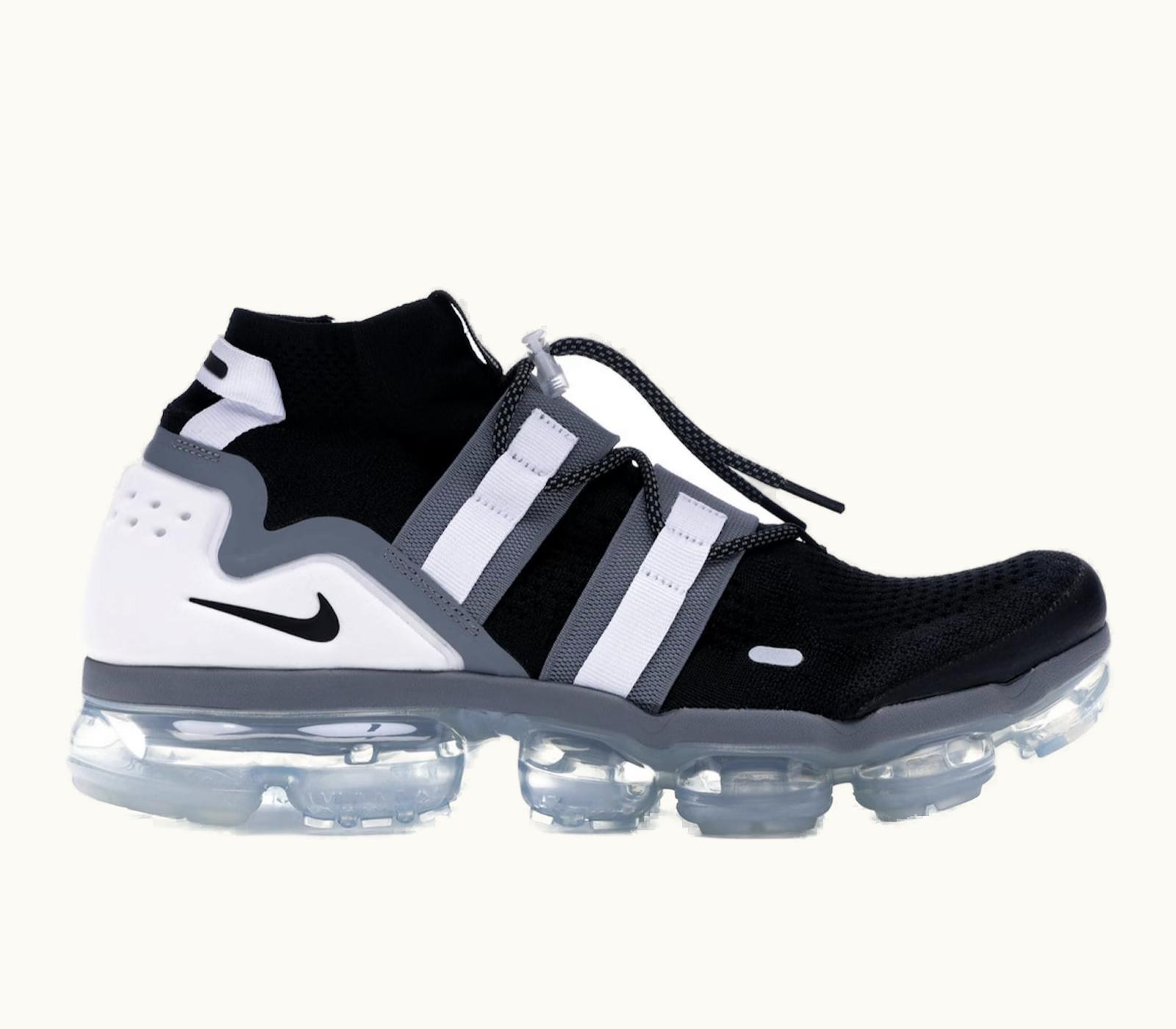 The Nike Air VaporMax Utility Black Cool Grey is a premium running shoe designed to deliver superior comfort and support for your daily running routine. It features a sleek black and cool grey upper that is made from lightweight and breathable materials to keep your feet cool and dry even during intense workouts. The shoe also comes with a unique laceless design that ensures a snug and secure fit, while the adjustable strap provides added stability and support. The cushioned footbed and midsole work together to provide exceptional shock absorption and energy return, allowing you to run farther and faster without feeling fatigued. The shoe features a revolutionary VaporMax Air technology that places Nike's Air cushioning system directly underfoot, providing unparalleled comfort, bounce, and responsiveness. The translucent rubber outsole is built for durability and traction, ensuring you stay stable and grounded no matter the terrain. Overall, the Nike Air VaporMax Utility Black Cool Grey is a top-performing running shoe that combines style and function to help you reach your fitness goals. So, whether you're a seasoned runner or just getting started, it's the perfect shoe for you.
