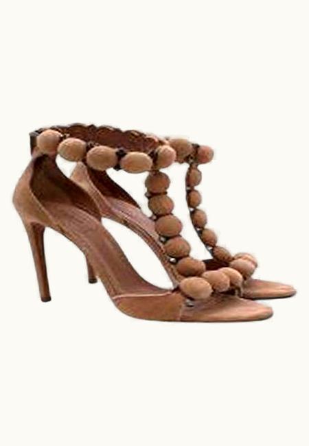 Alaia Beige Suede Bombe T-strap Sandals UZ0587390 | GLINT