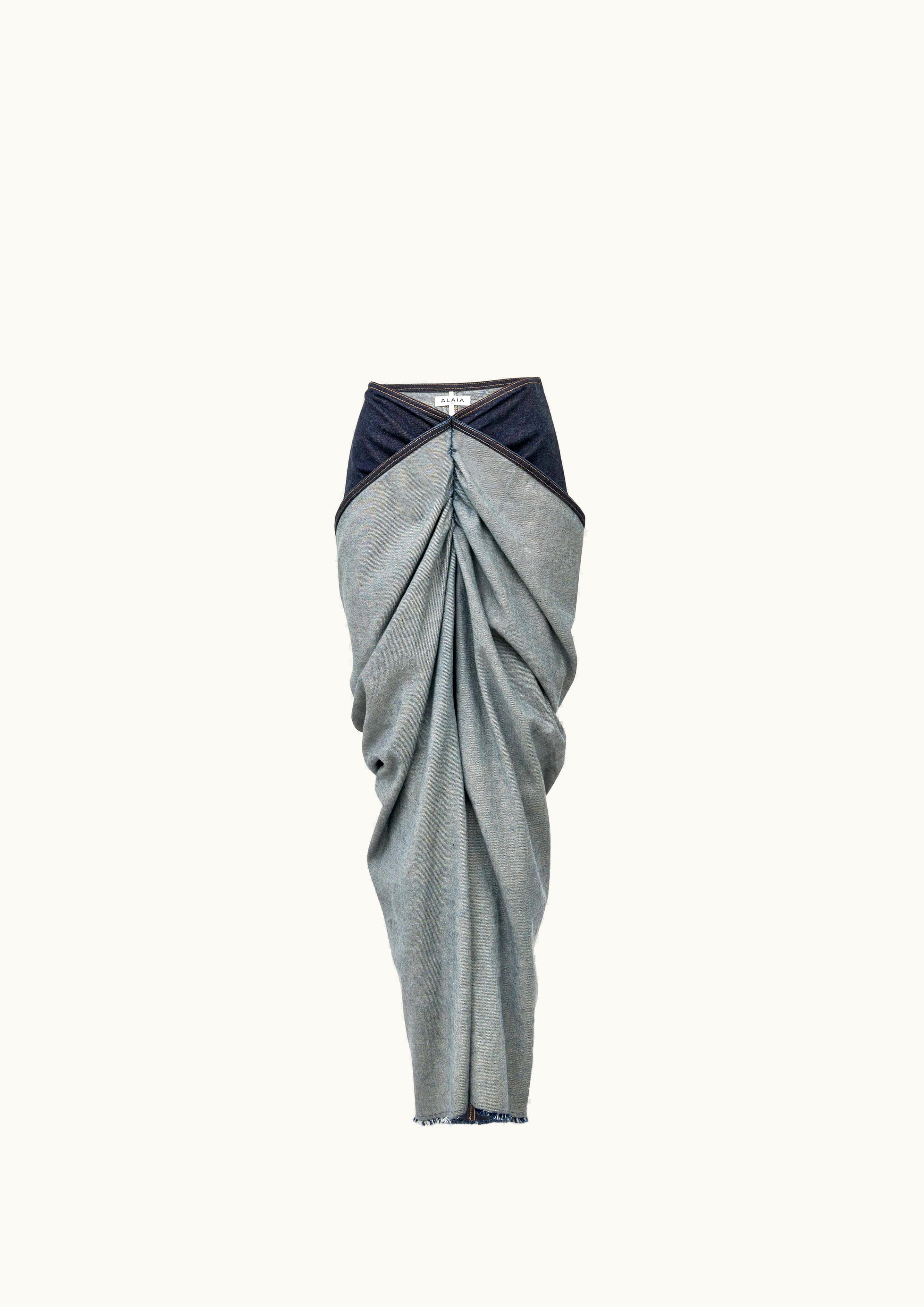 Alaia Women's Blue Draped Denim Skirt | GLINT