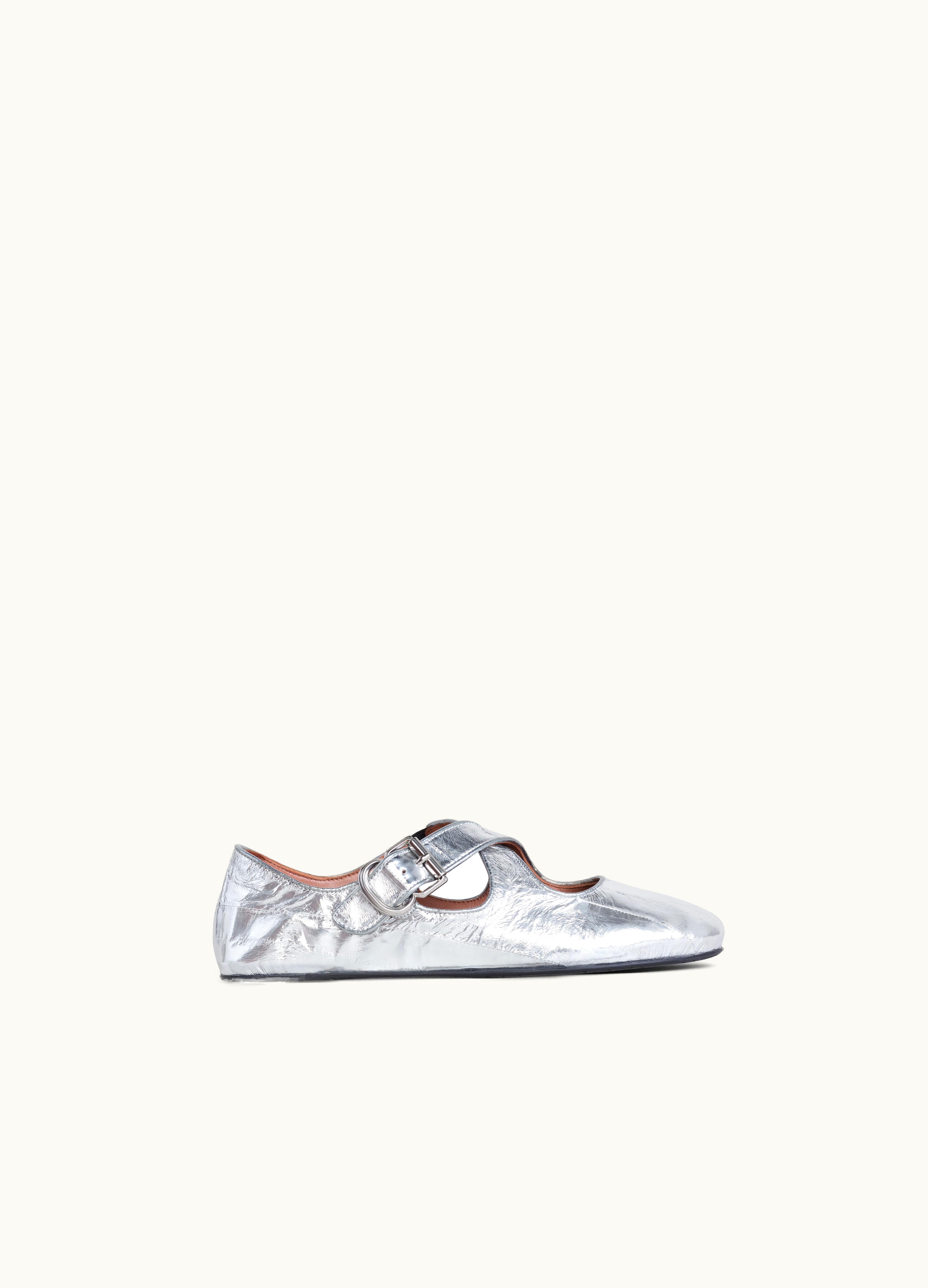 Alaia Women's Silver Criss Cross Ballet Flats | GLINT