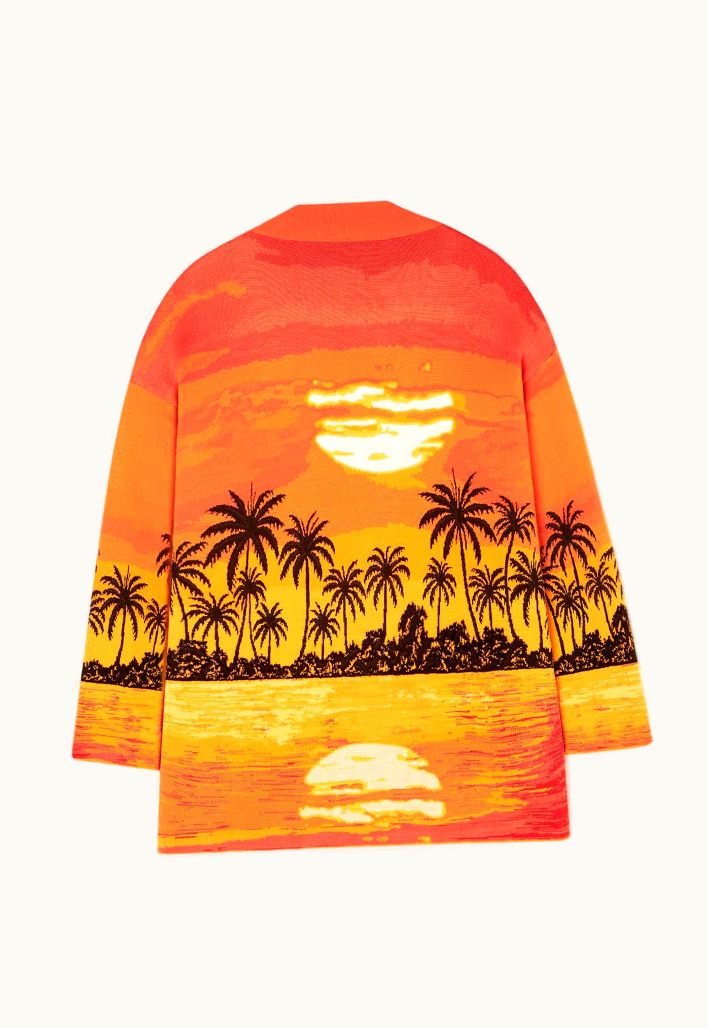 Alanui Kerala Sunset Intarsia Cardigan in Orange Sunset | GLINT