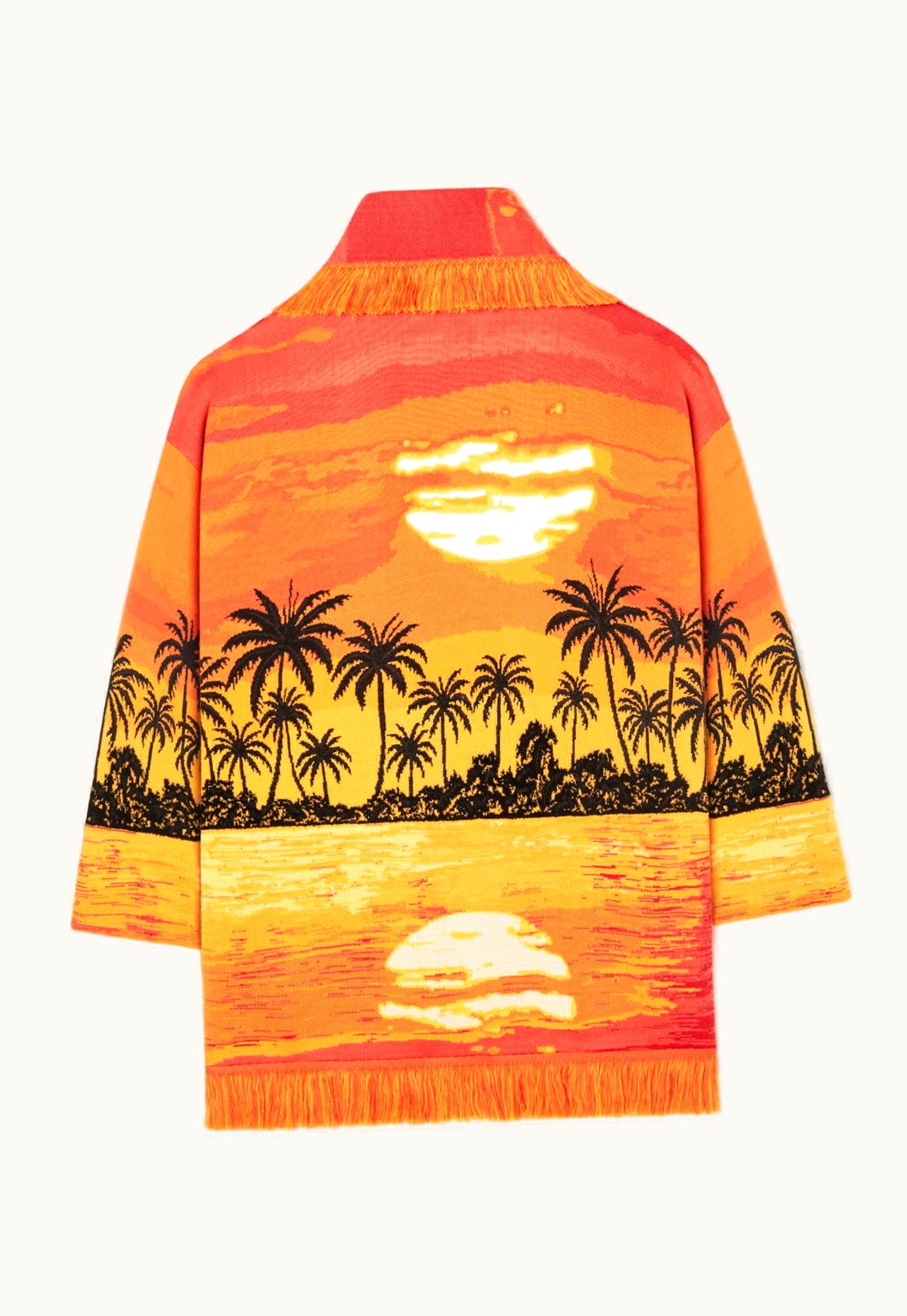 Alanui Kerala Sunset Wool-Cotton Blend Cardigan In Orange | GLINT