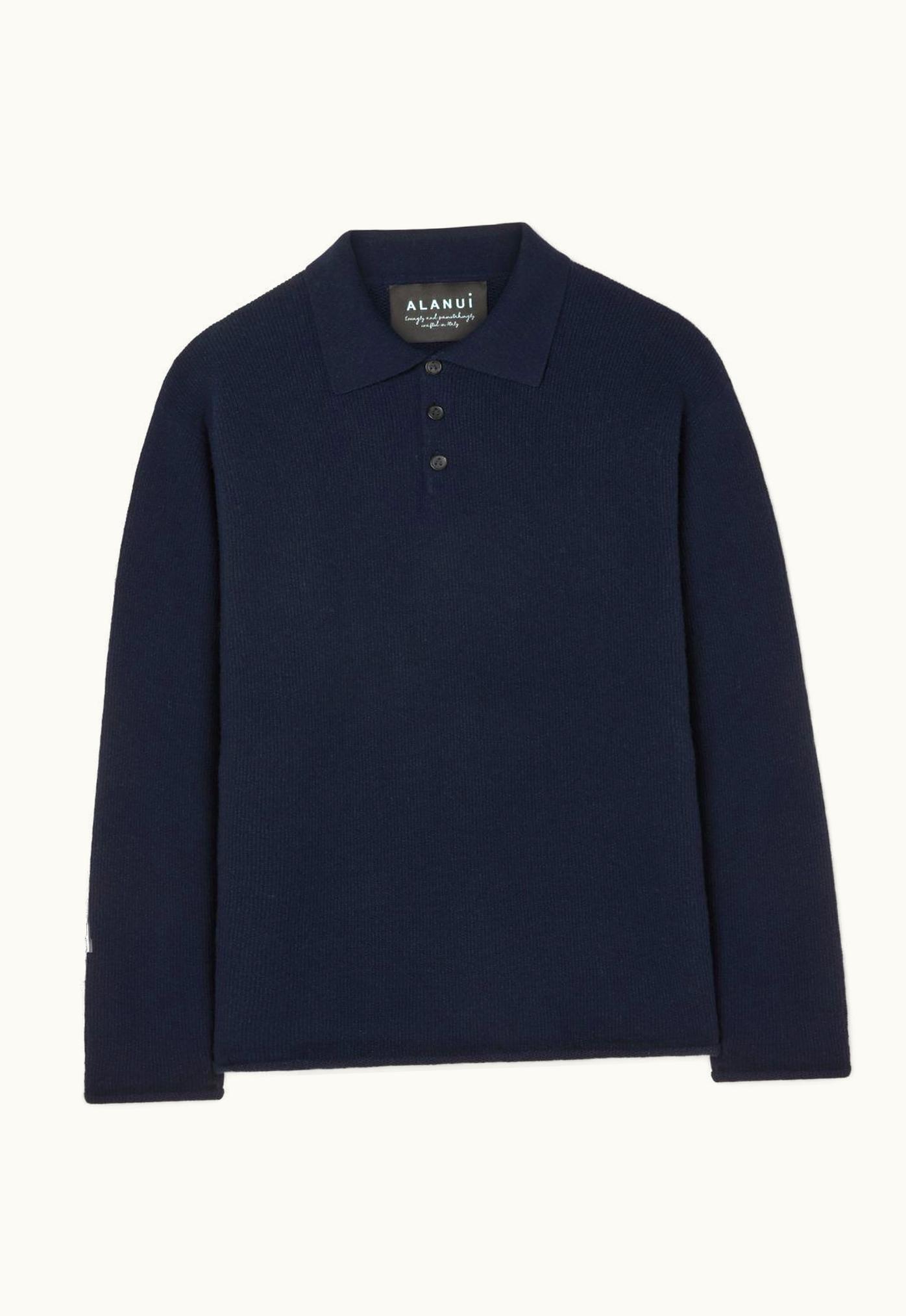 Alanui Ribbed Knit Cashmere Polo Top In Navy Blue | GLINT