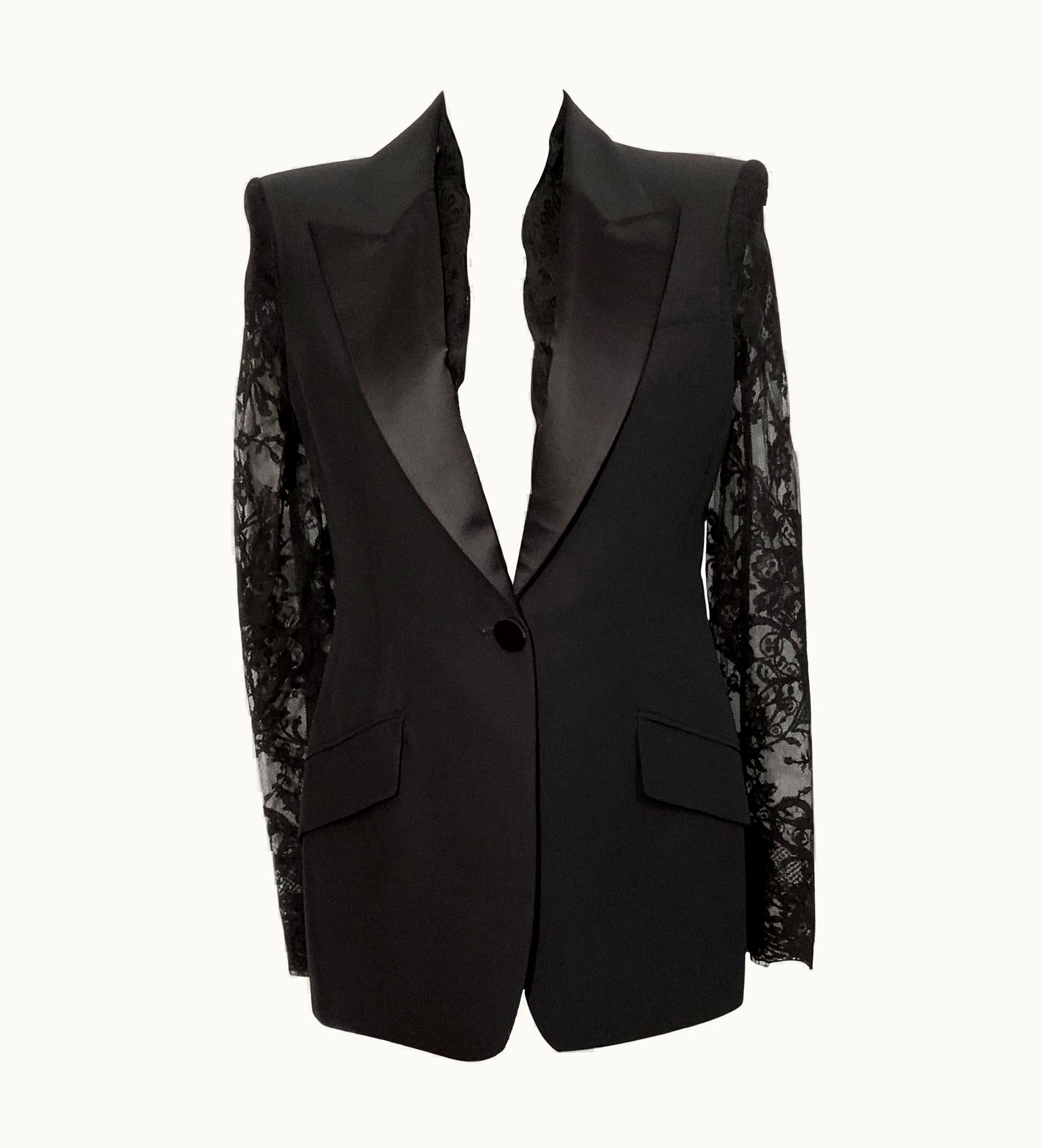 Alexander McQueen Lace Sleeve Tuxedo Black Jacket | GLINT