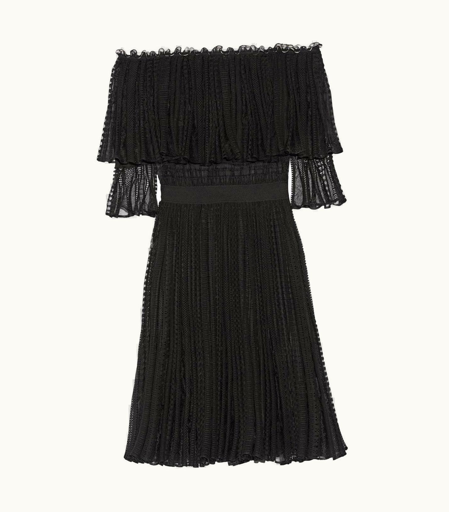 Alexander McQueen Off-The-Shoulder Ruffled Knitted Dress | GLINT