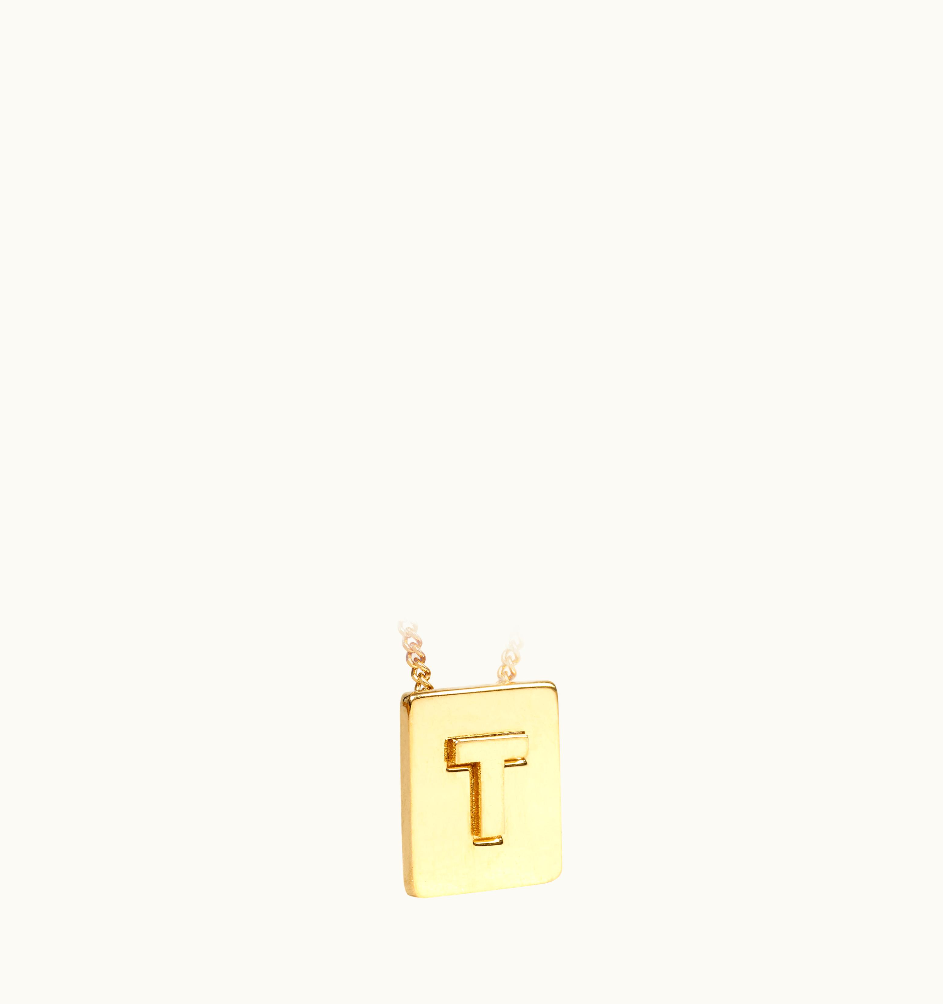 Celine Alphabet T Necklace In Brass With Gold Finish Gold | GLINT