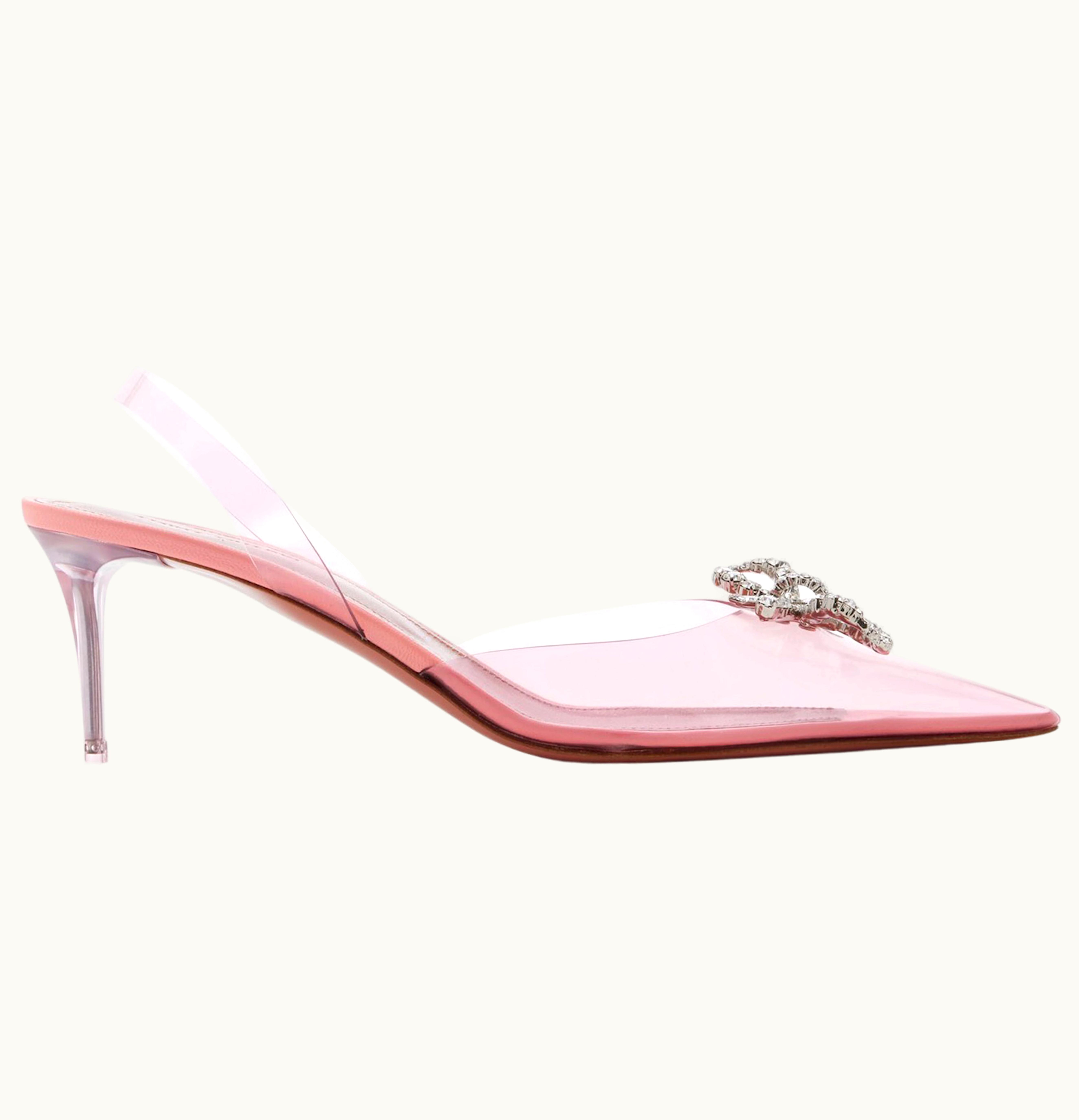 Amina Muaddi Rosie 60mm Glass PVC Sling Baby Pink | GLINT