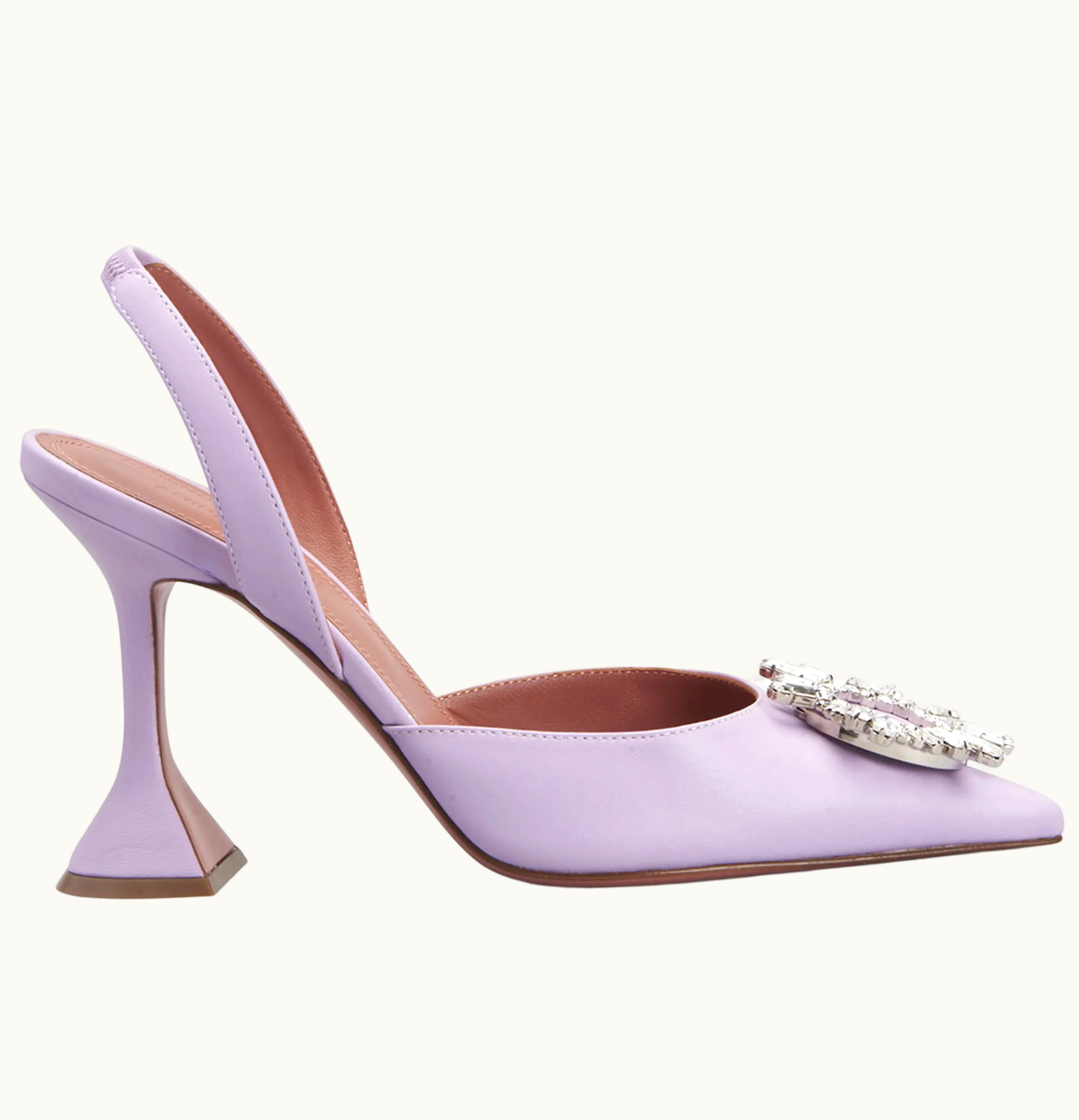Amina Muaddi Begum 95mm Leather Sling Lilac | GLINT