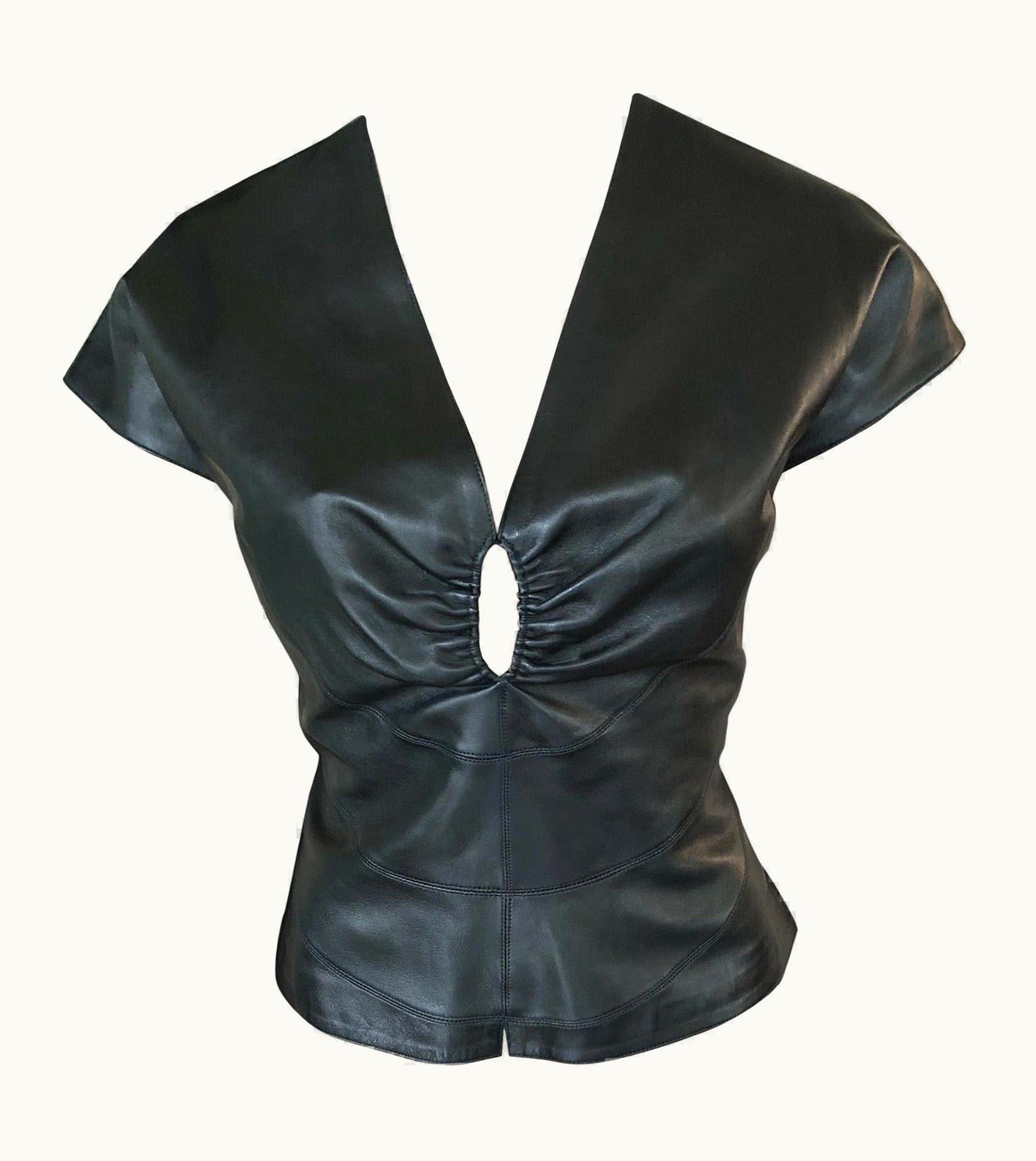 Azzedine Alaia Black Leather Cutout Top | GLINT