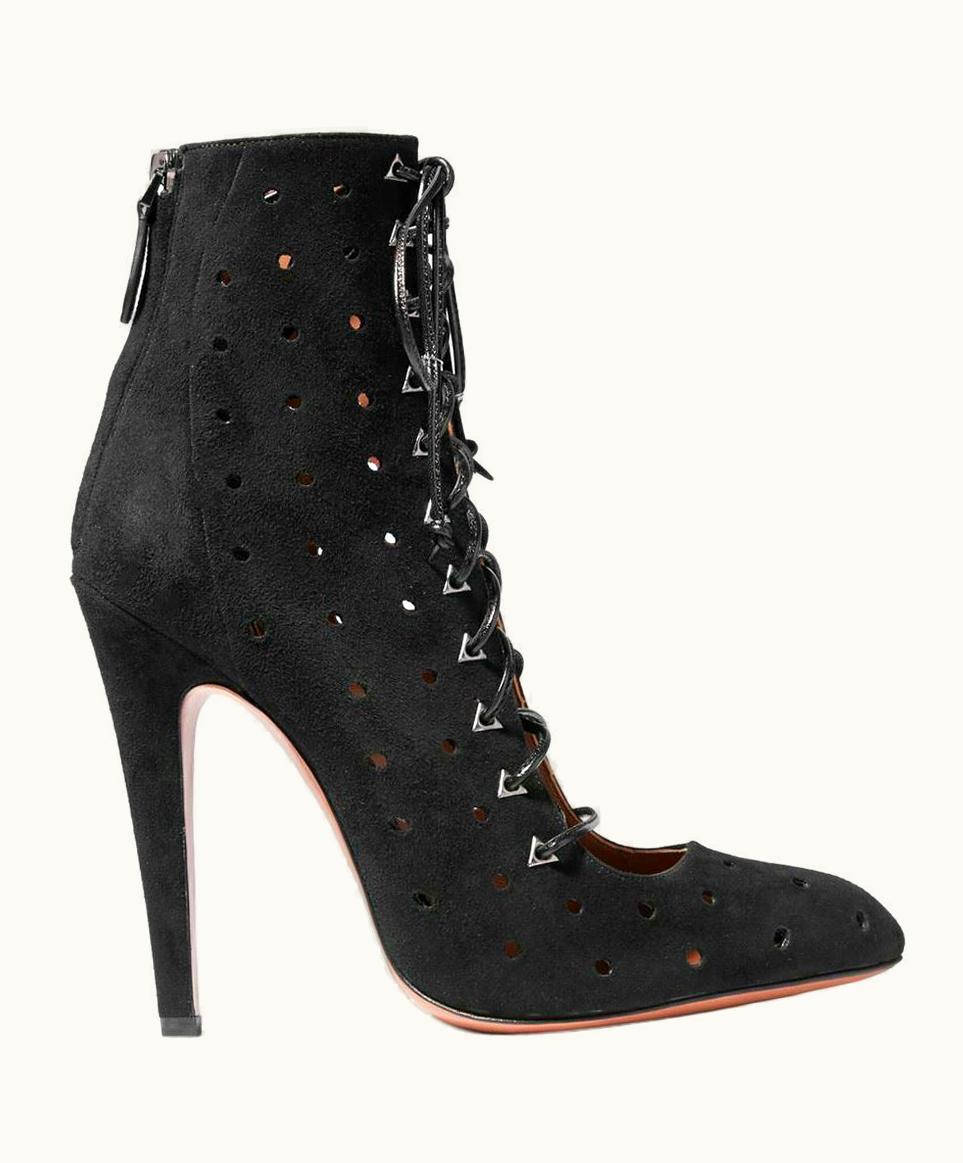 Azzedine Alaïa Lace-Up Laser-Cut Suede Ankle Boots | GLINT