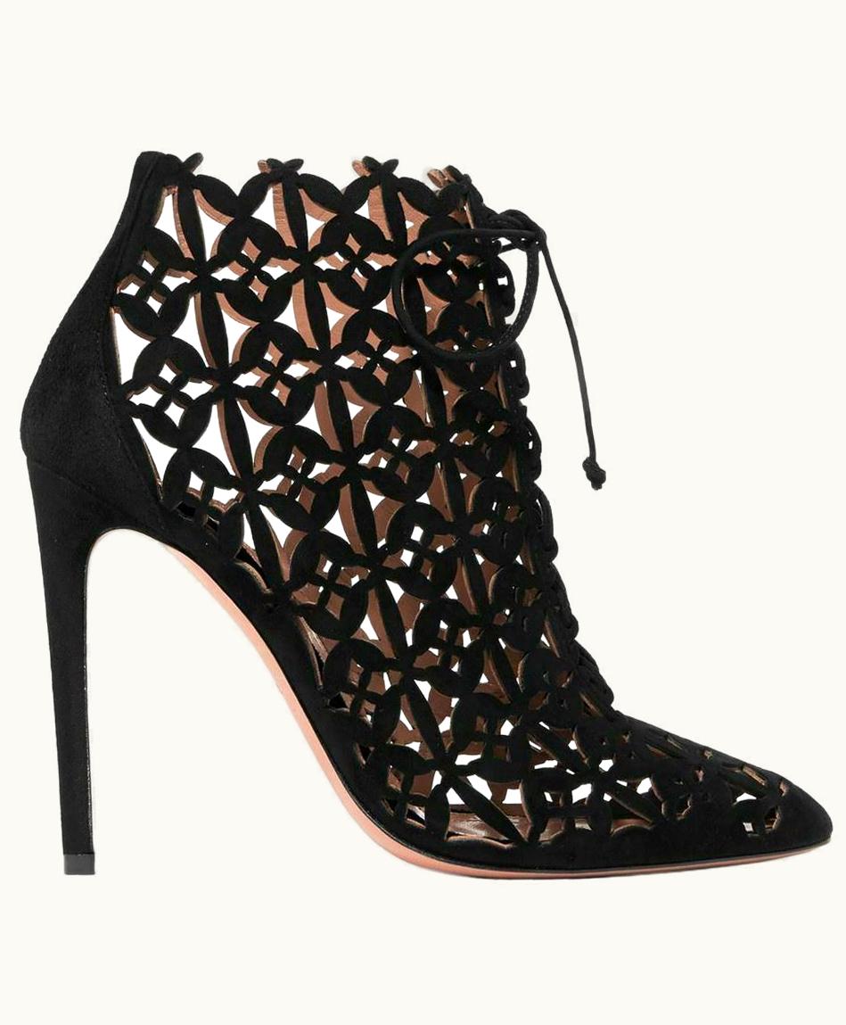Azzedine Alaïa Laser-Cut Suede Ankle Boots | GLINT