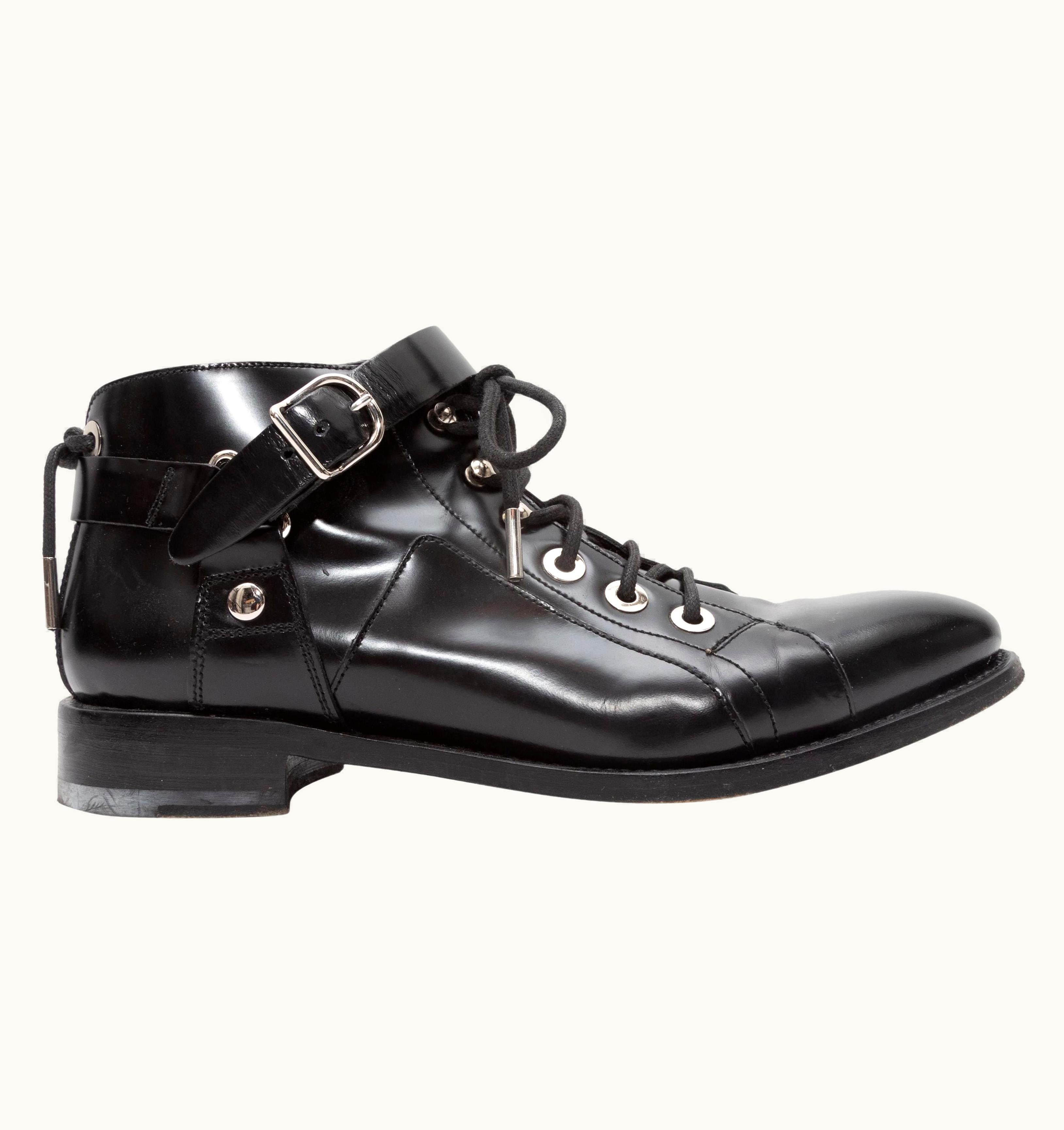 Balenciaga Black Leather Harness Ankle Boots | GLINT
