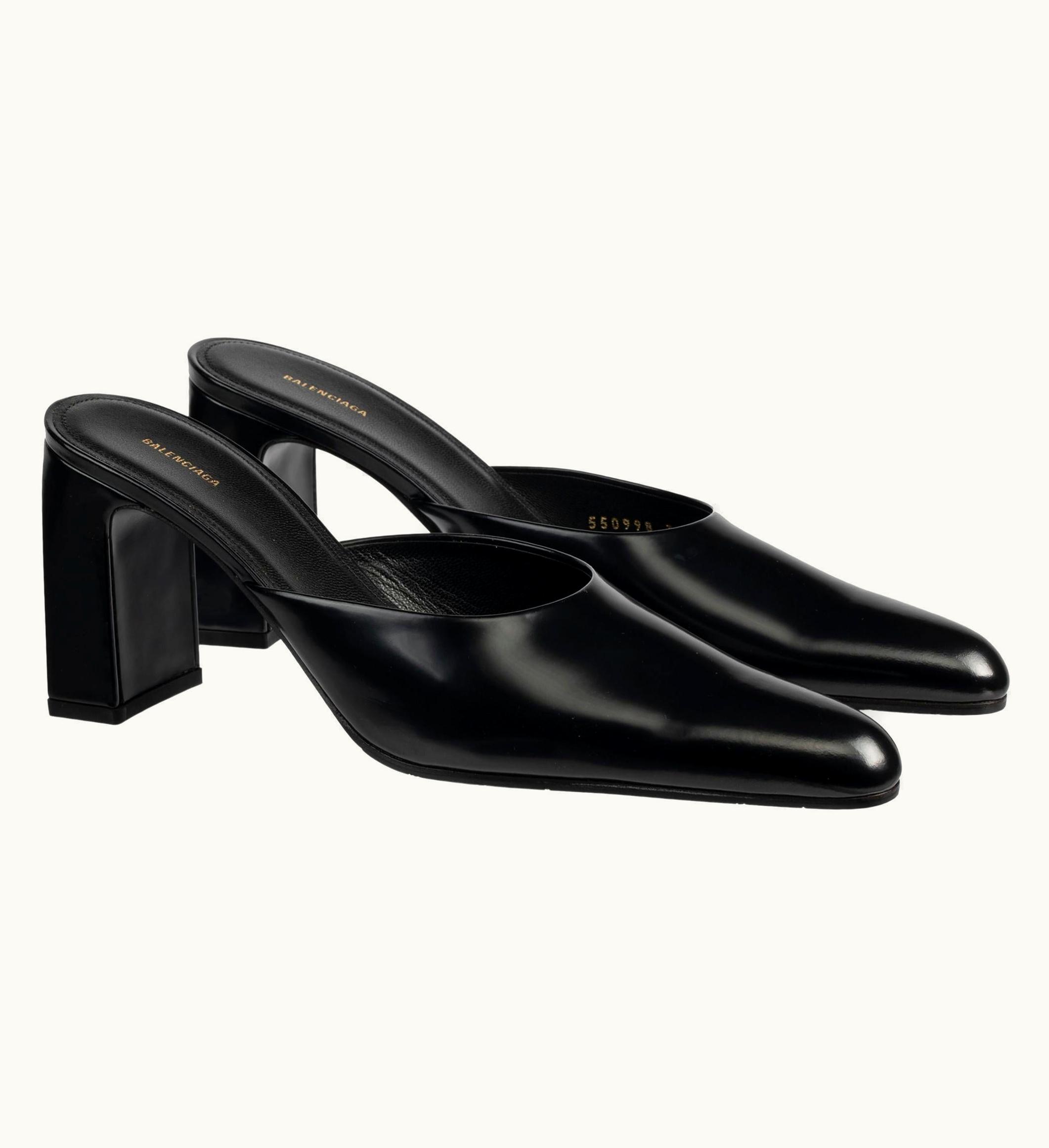 Balenciaga Black Leather Mules 39.5 Fr | GLINT