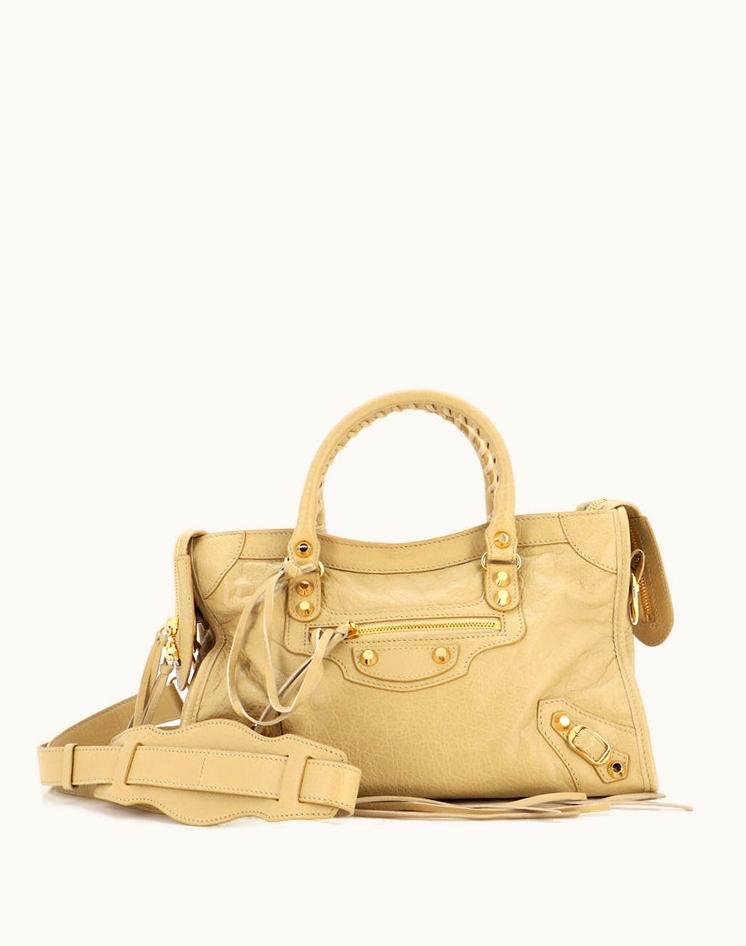 Balenciaga City Classic Studs Bag Leather Small Neutral Gold | GLINT