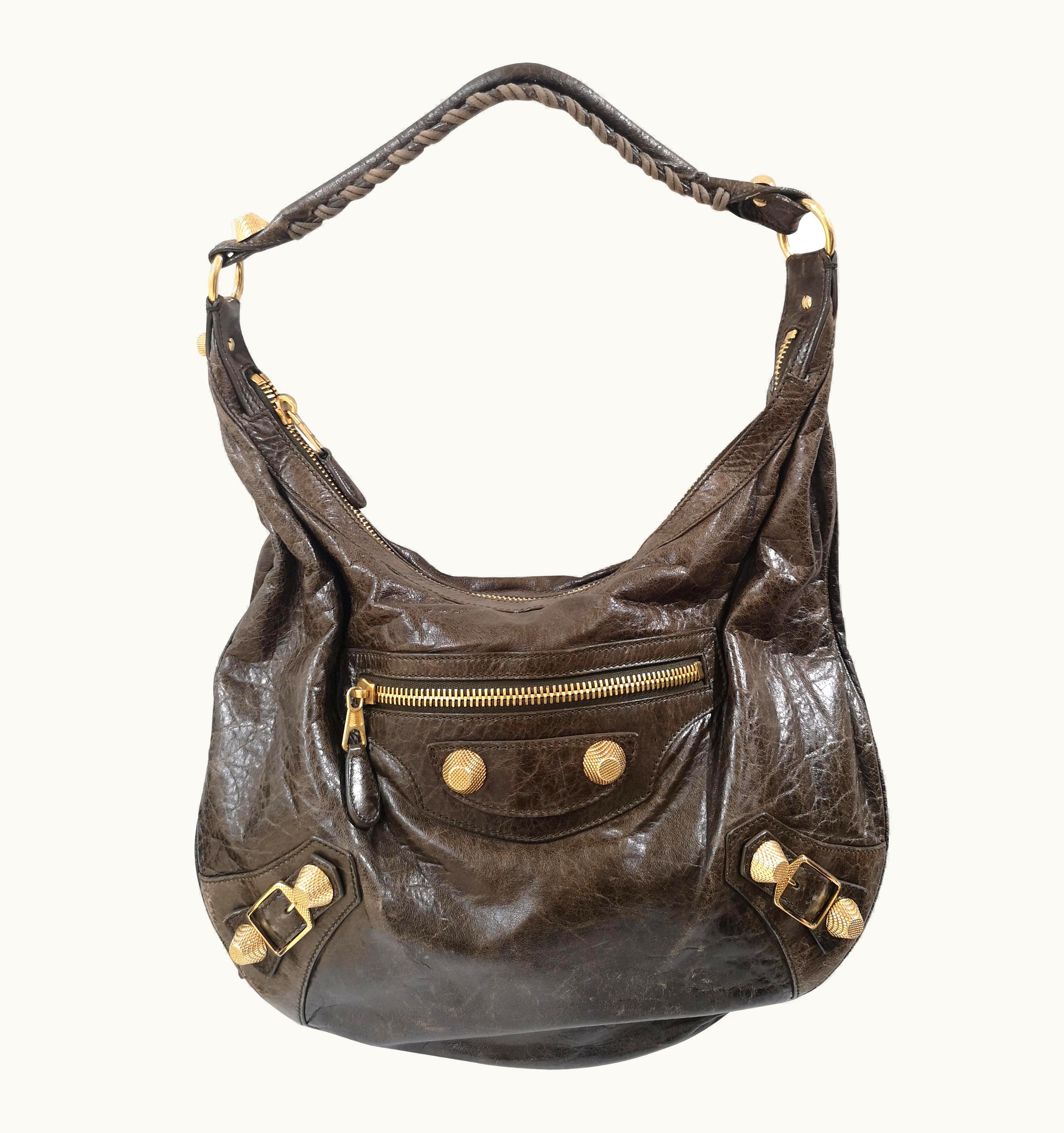 Balenciaga Green Leather Gold Giant Shoulder Bag | GLINT