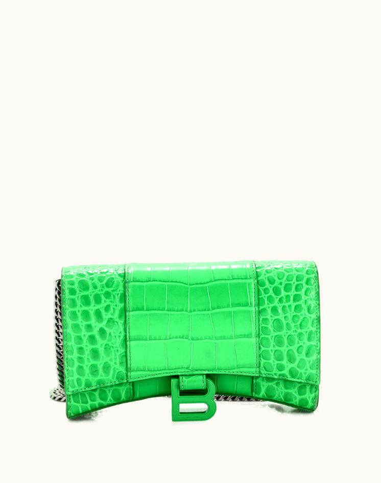 Balenciaga Hourglass Chain Wallet Crocodile Embossed Leather Green | GLINT