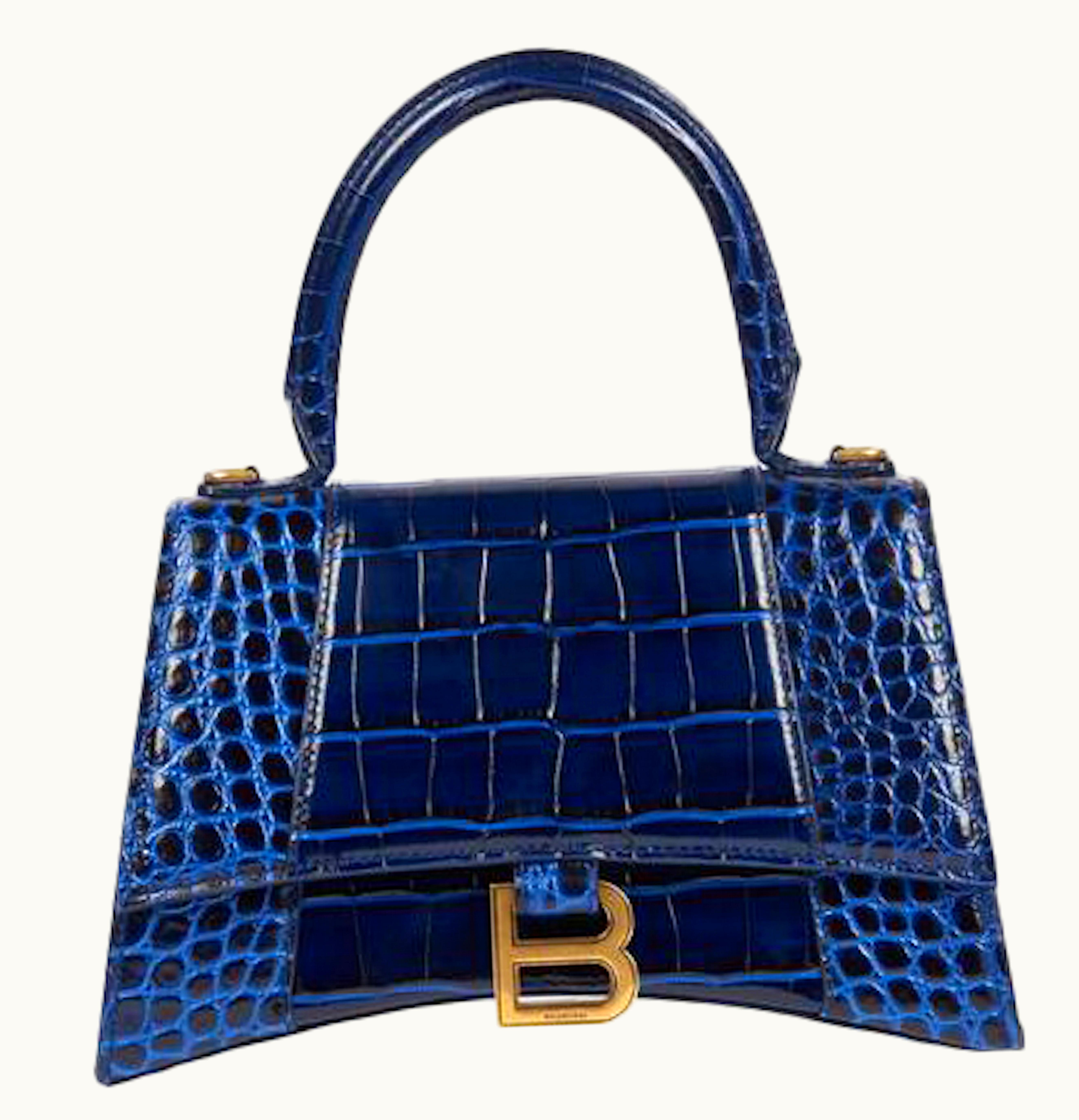 Balenciaga Hourglass Top Handle Bag Small Crocodile Embossed Navy | GLINT