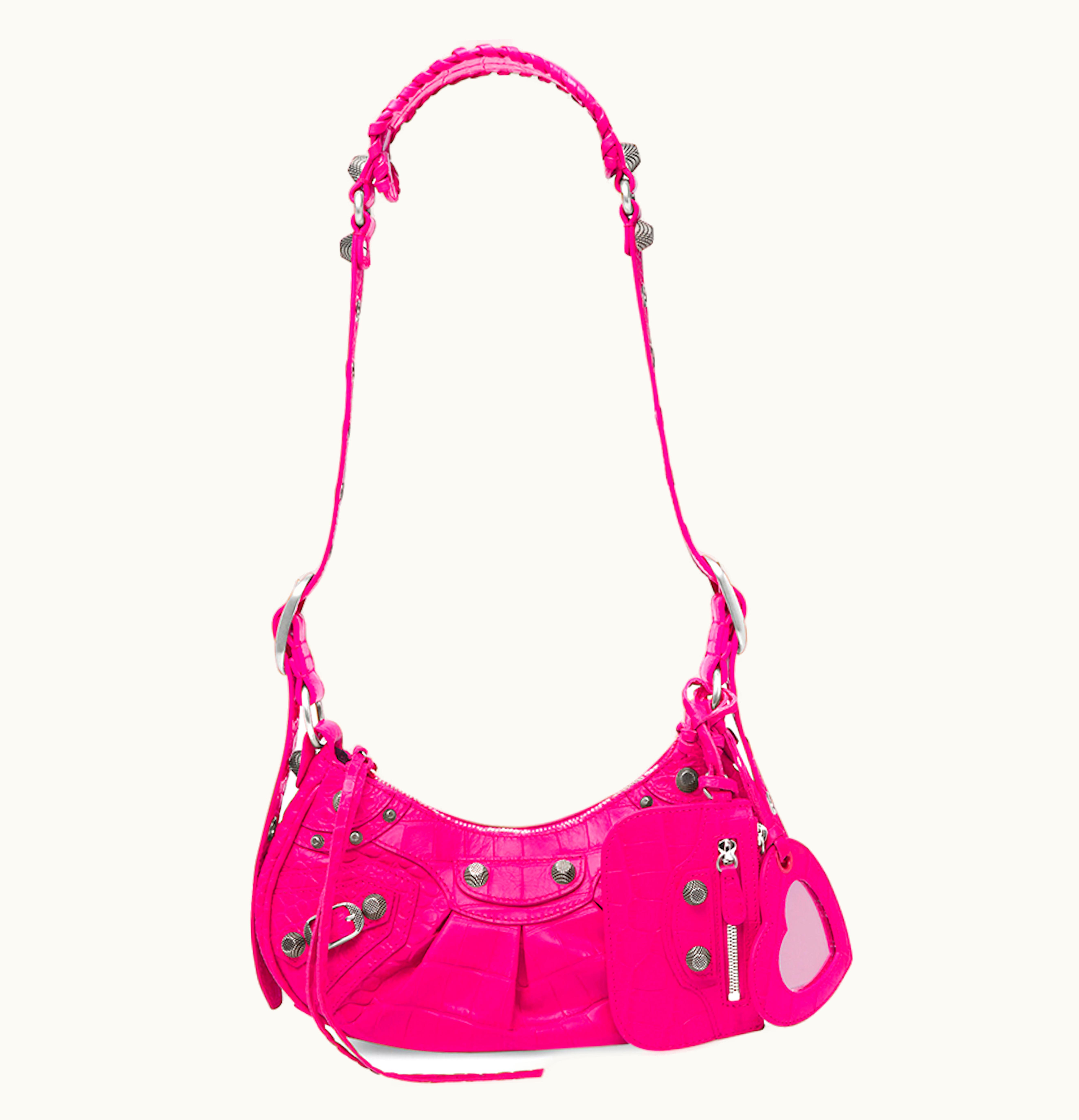 Balenciaga Le Cagole Shoulder Bag XS Crocodile Embossed Pink | GLINT