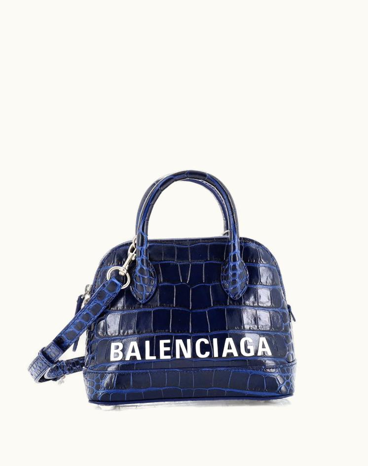 Balenciaga Logo Ville Bag Crocodile Embossed Leather XXS Mini Crossbody Blue | GLINT