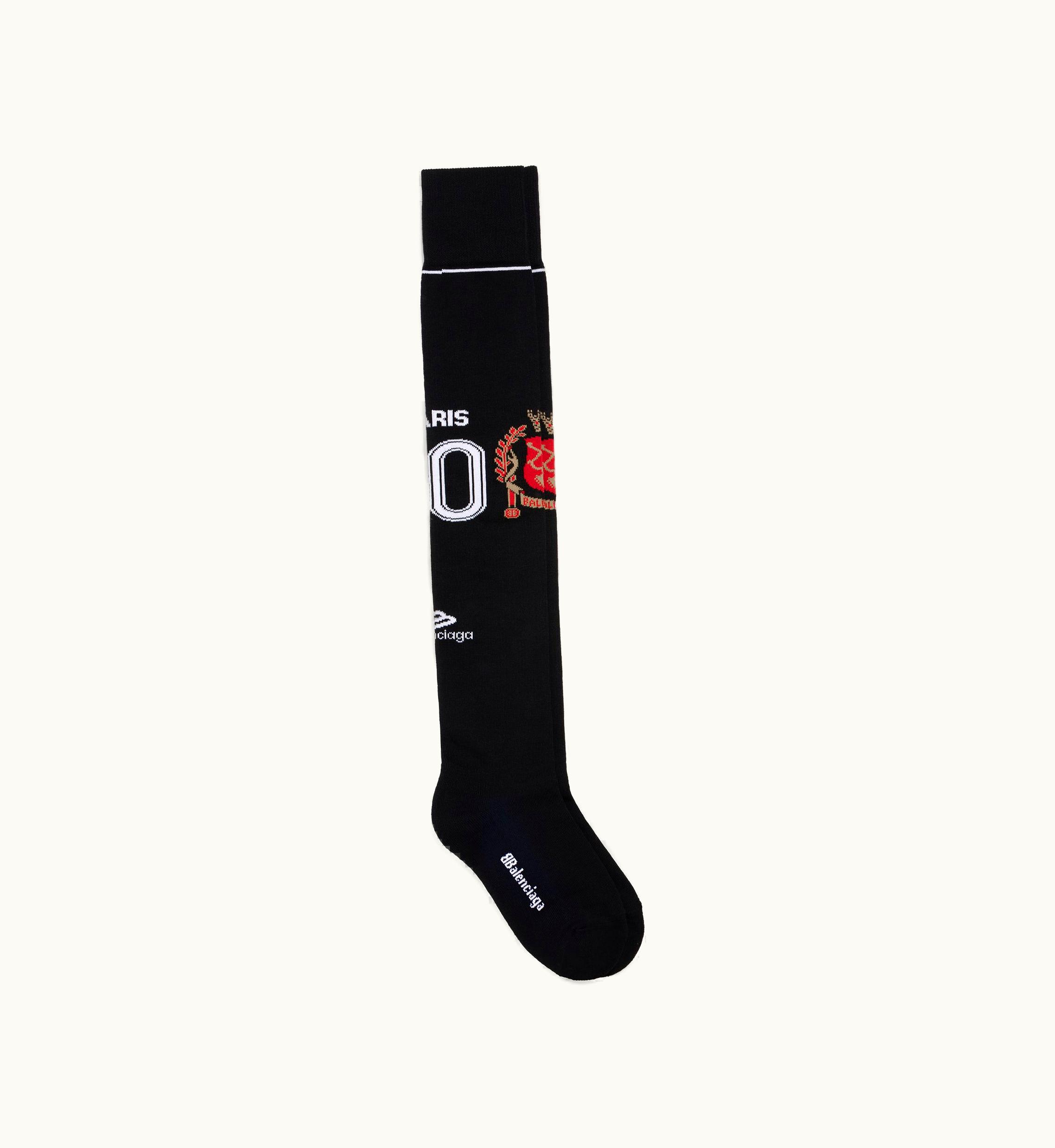 Balenciaga Paris Soccer High Socks In Black | GLINT