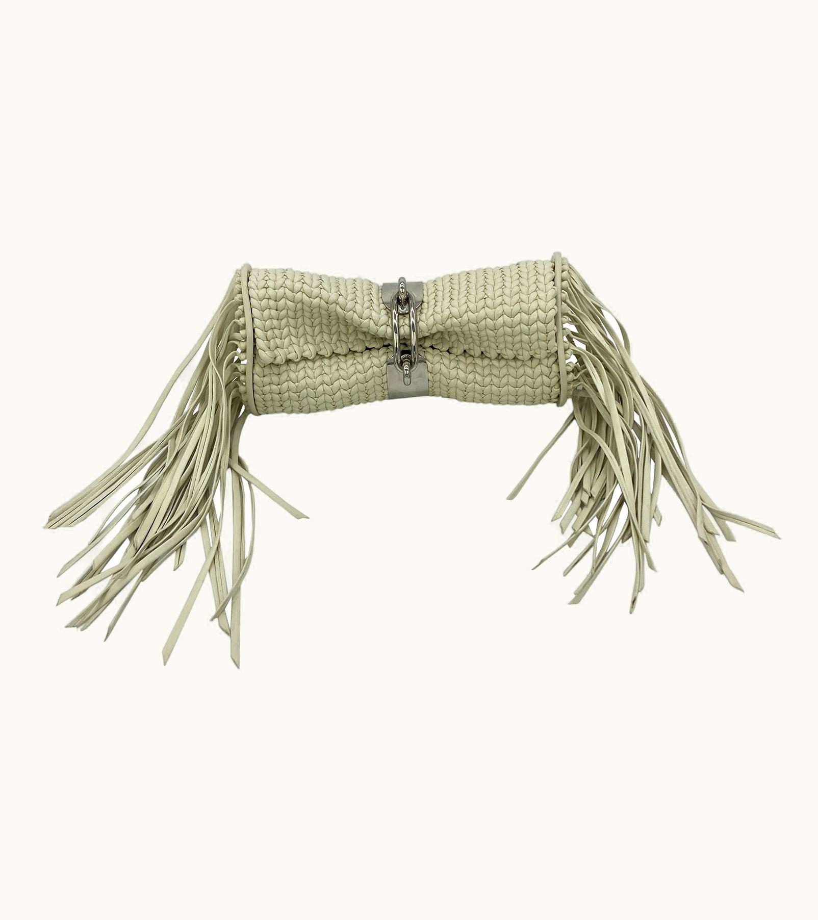 Balenciaga White Leather Tresse Fringe Clutch | GLINT