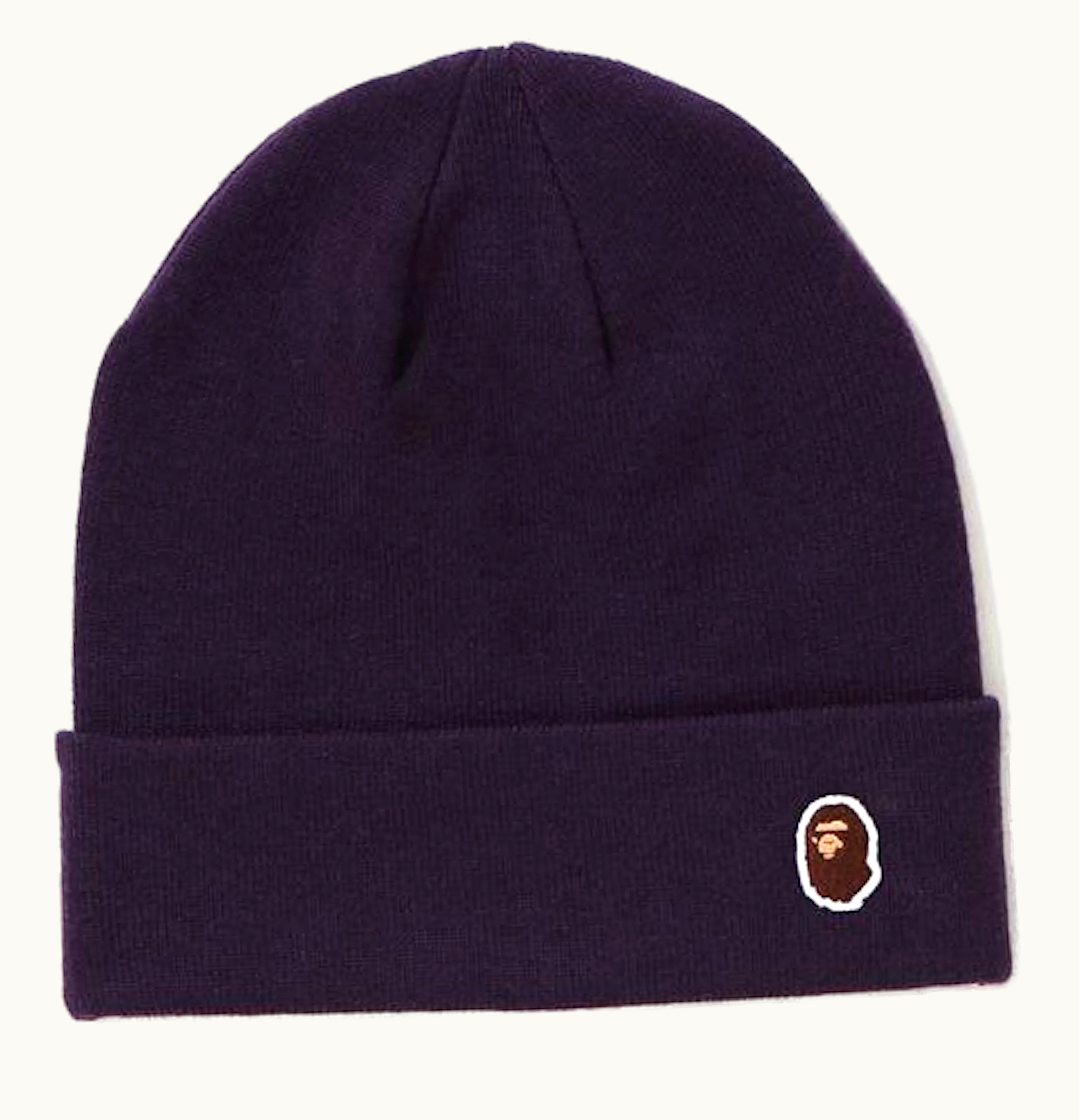 BAPE Ape Head One Point Knit Cap Purple Brown | GLINT