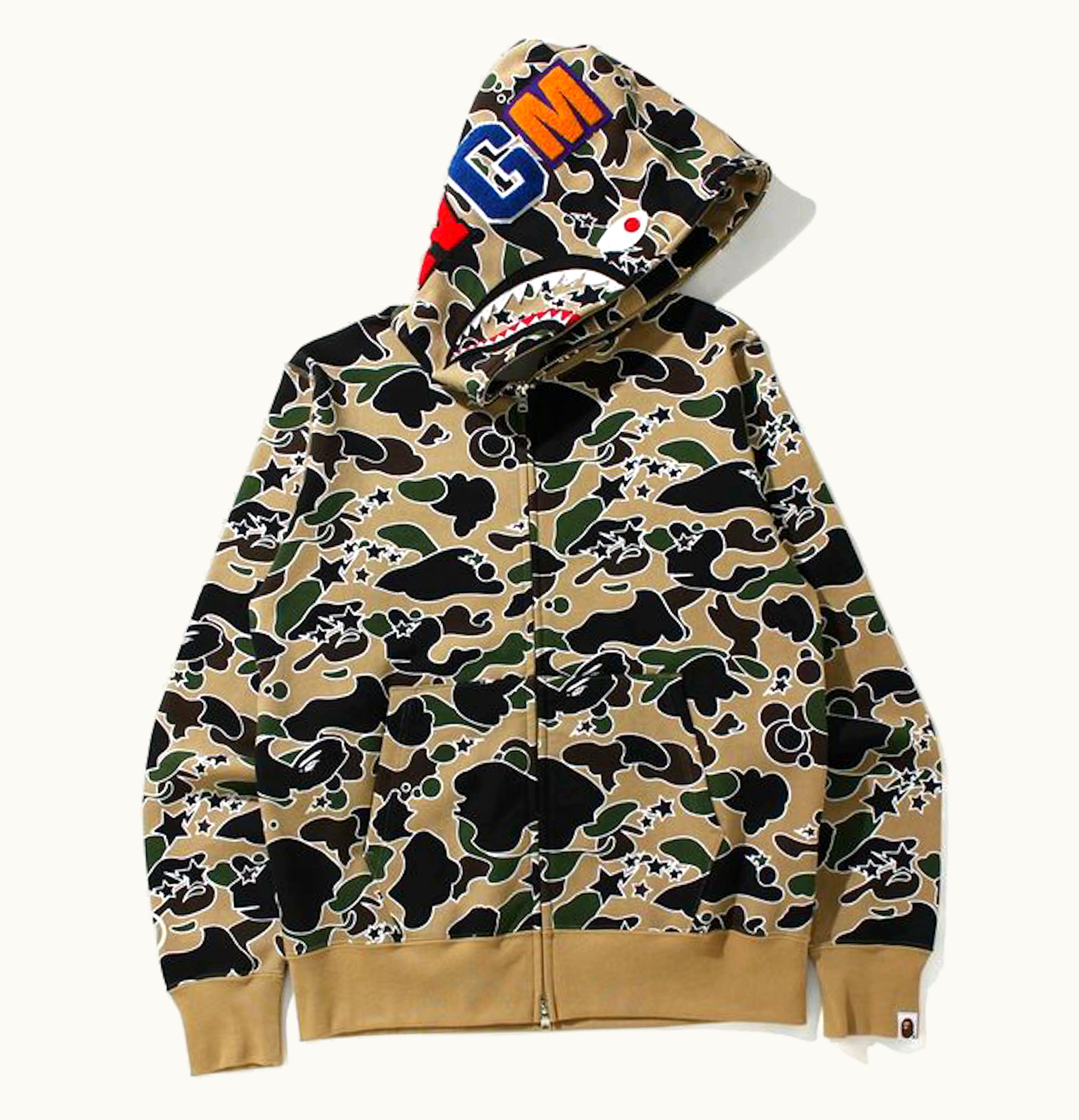 The BAPE Sta Camo Shark Full Zip is a stylish and trendy jacket designed to provide warmth and comfort in cold weather. Made from high-quality materials, this jacket features an attractive camouflage pattern with the iconic BAPE shark motif on the hood. The full-zip closure and ribbed cuffs and hem provide a snug and secure fit, while the soft and warm fleece lining ensures maximum insulation from the cold. The jacket also has two side pockets and a zippered chest pocket, which provide plenty of space to store essentials. Whether you're going for a casual walk, running errands, or simply hanging out with friends, the BAPE Sta Camo Shark Full Zip is a stylish and comfortable choice that will keep you warm and looking great.
