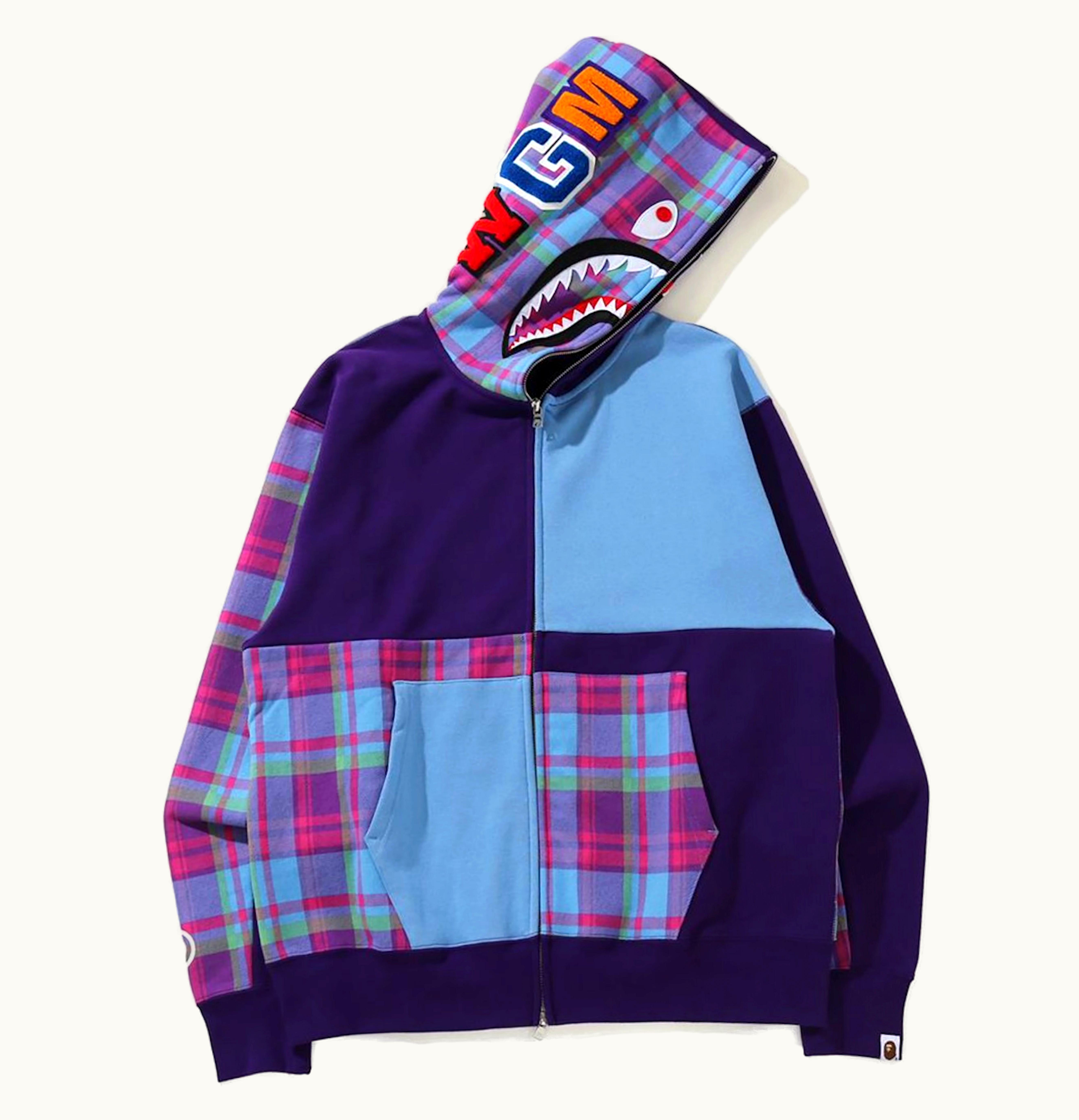 BAPE Check Shark Relaxed Full Zip Hoodie Purple | GLINT