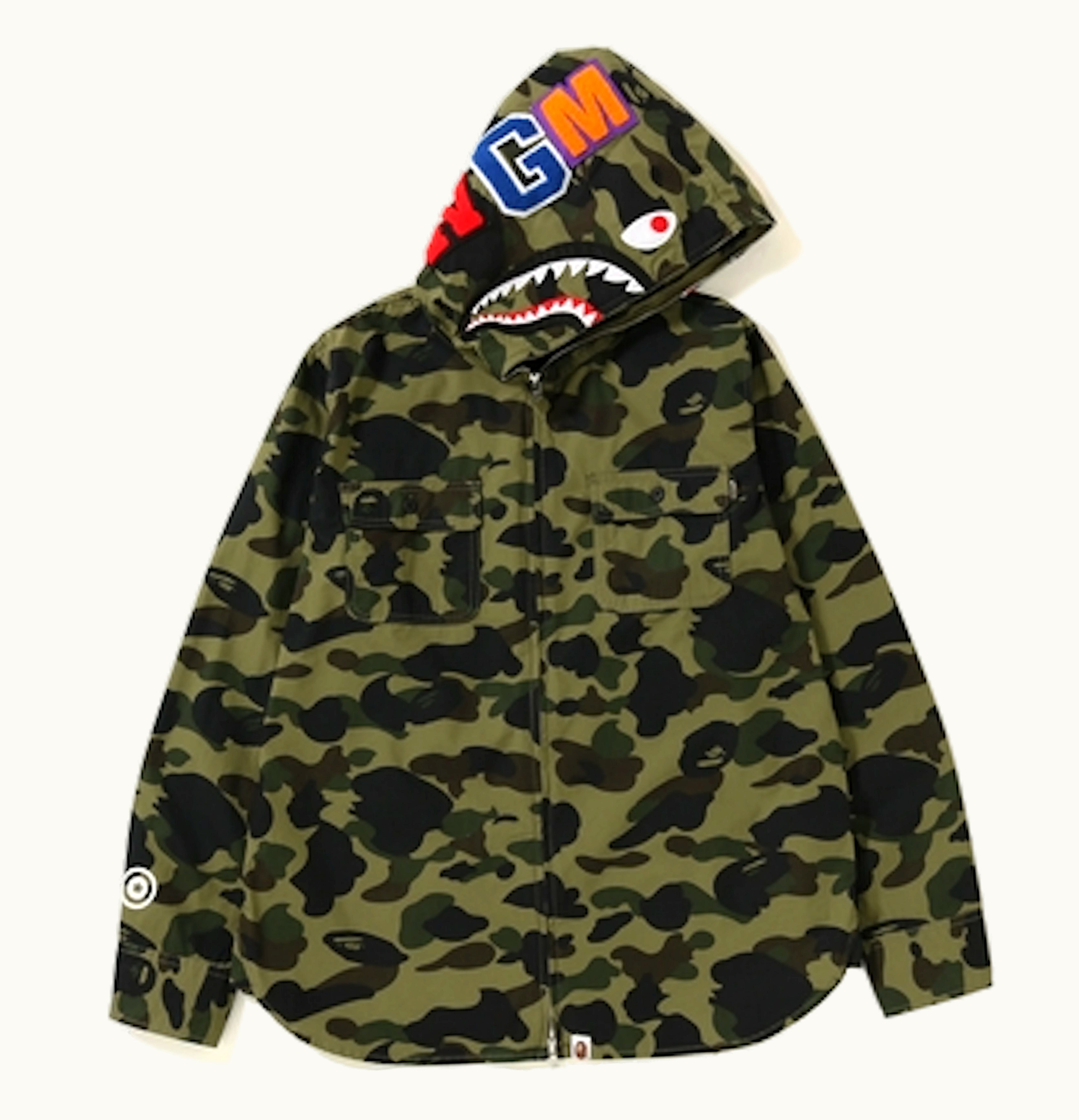 BAPE 1st Camo Shark Hoodie Zip Up Shirt Green | GLINT