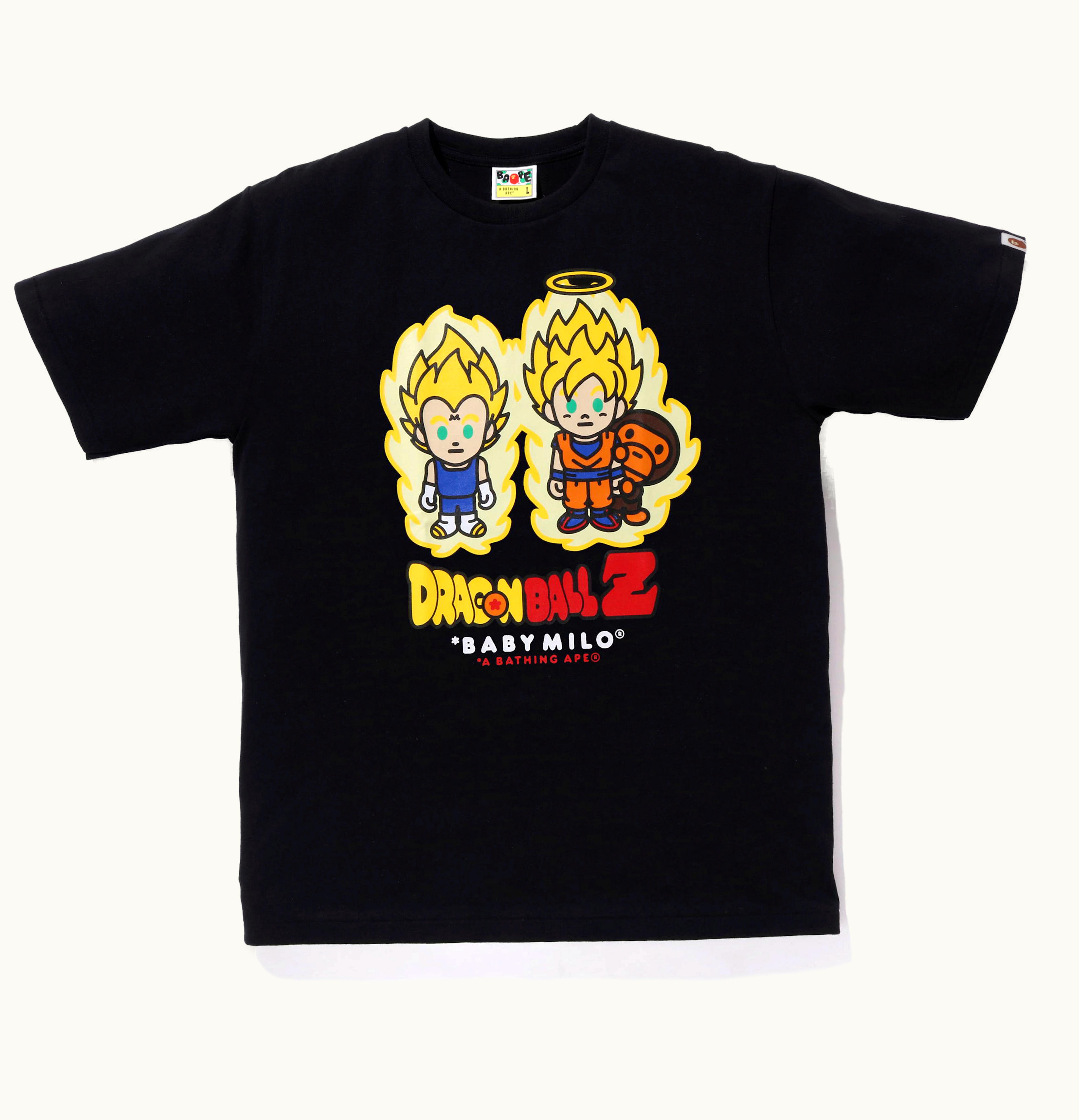 BAPE x Dragon Ball Z Super Saiyan Vegeta Son Goku Baby Milo Tee Black | GLINT