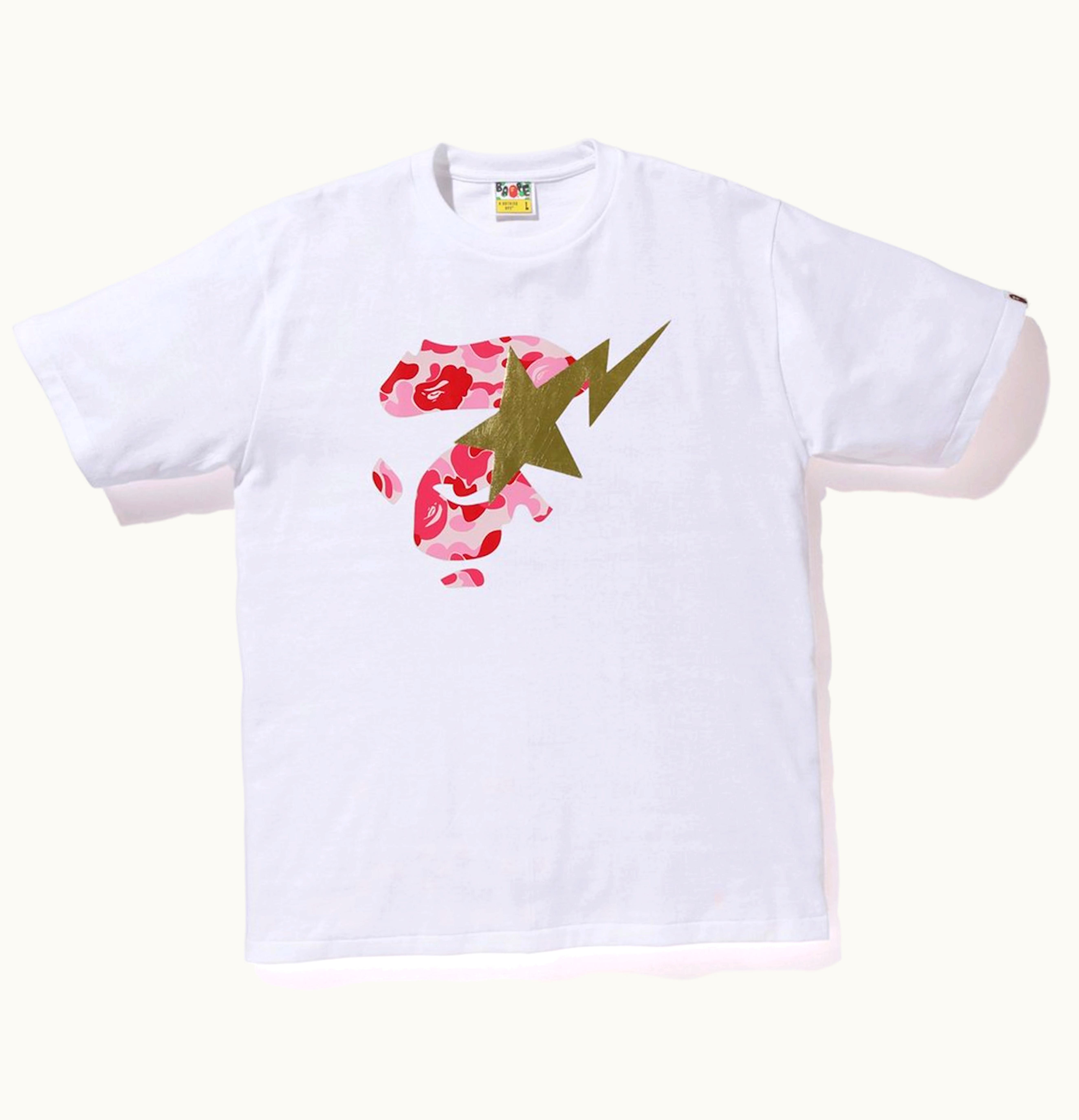 BAPE ABC Ape Face on BAPEsta Tee White Pink | GLINT