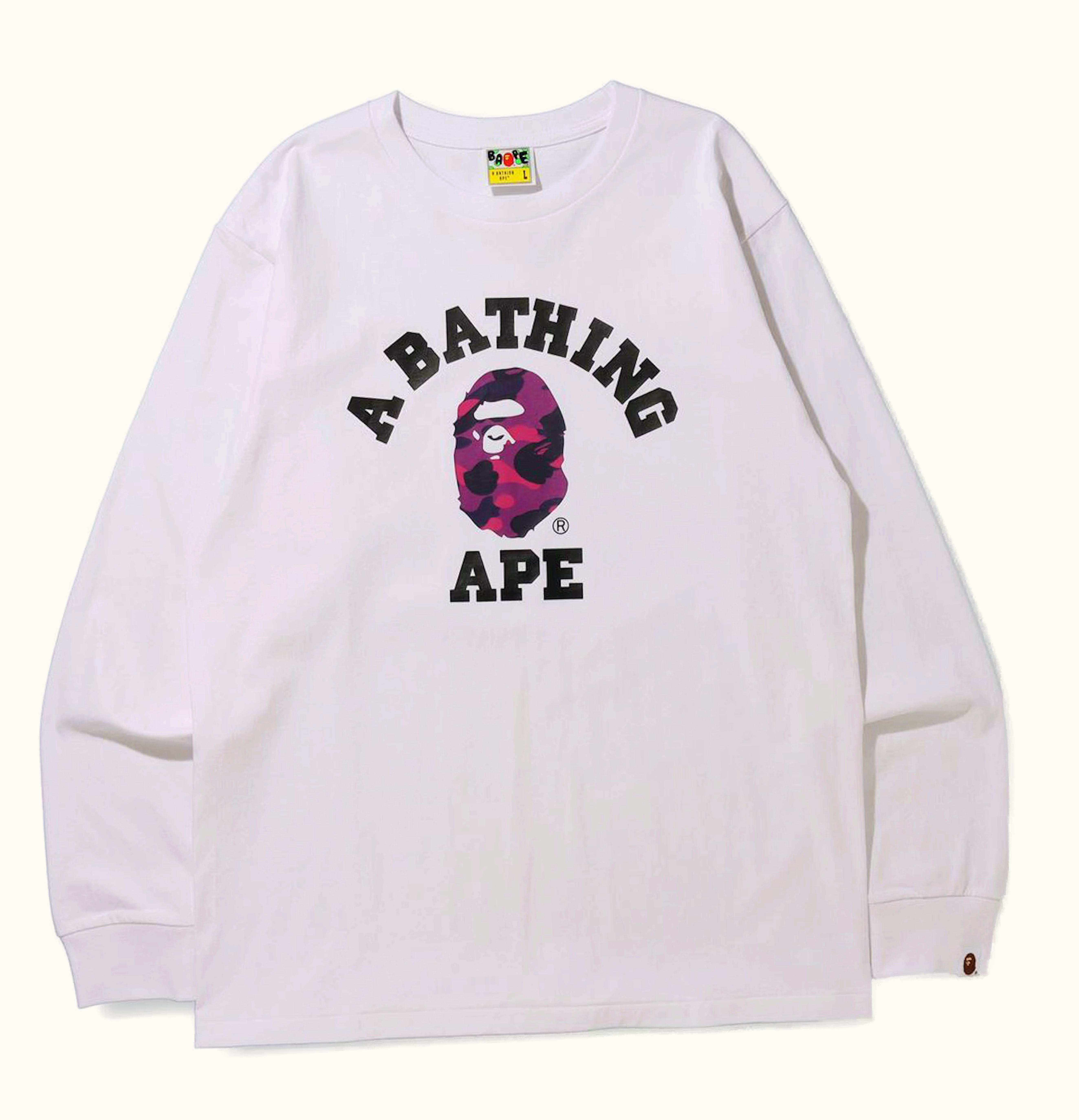 BAPE Color Camo College Online Exclusive L S Tee FW21 White Purple | GLINT