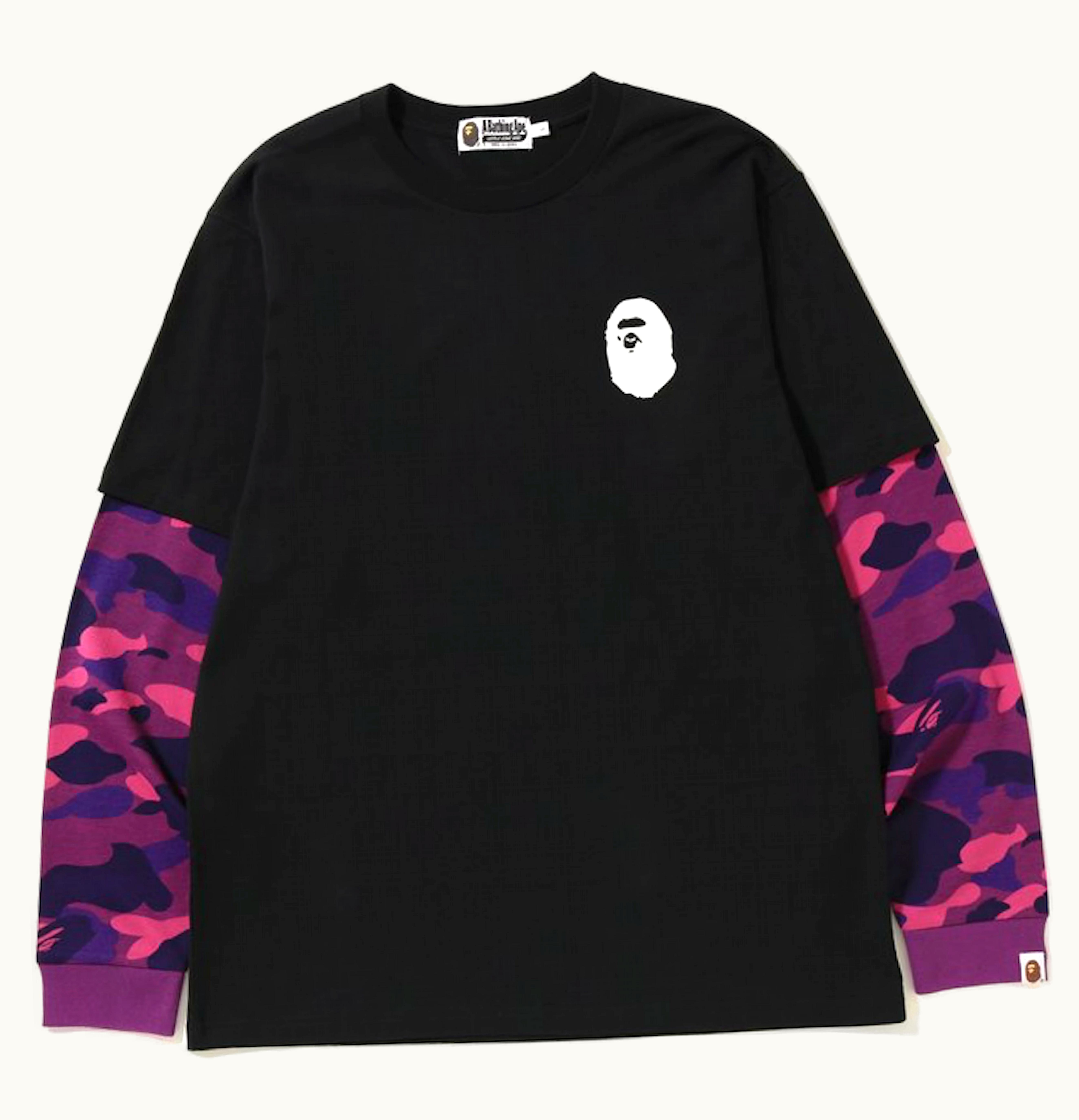 BAPE Color Camo Ape Head Layered L S Tee Black Purple | GLINT