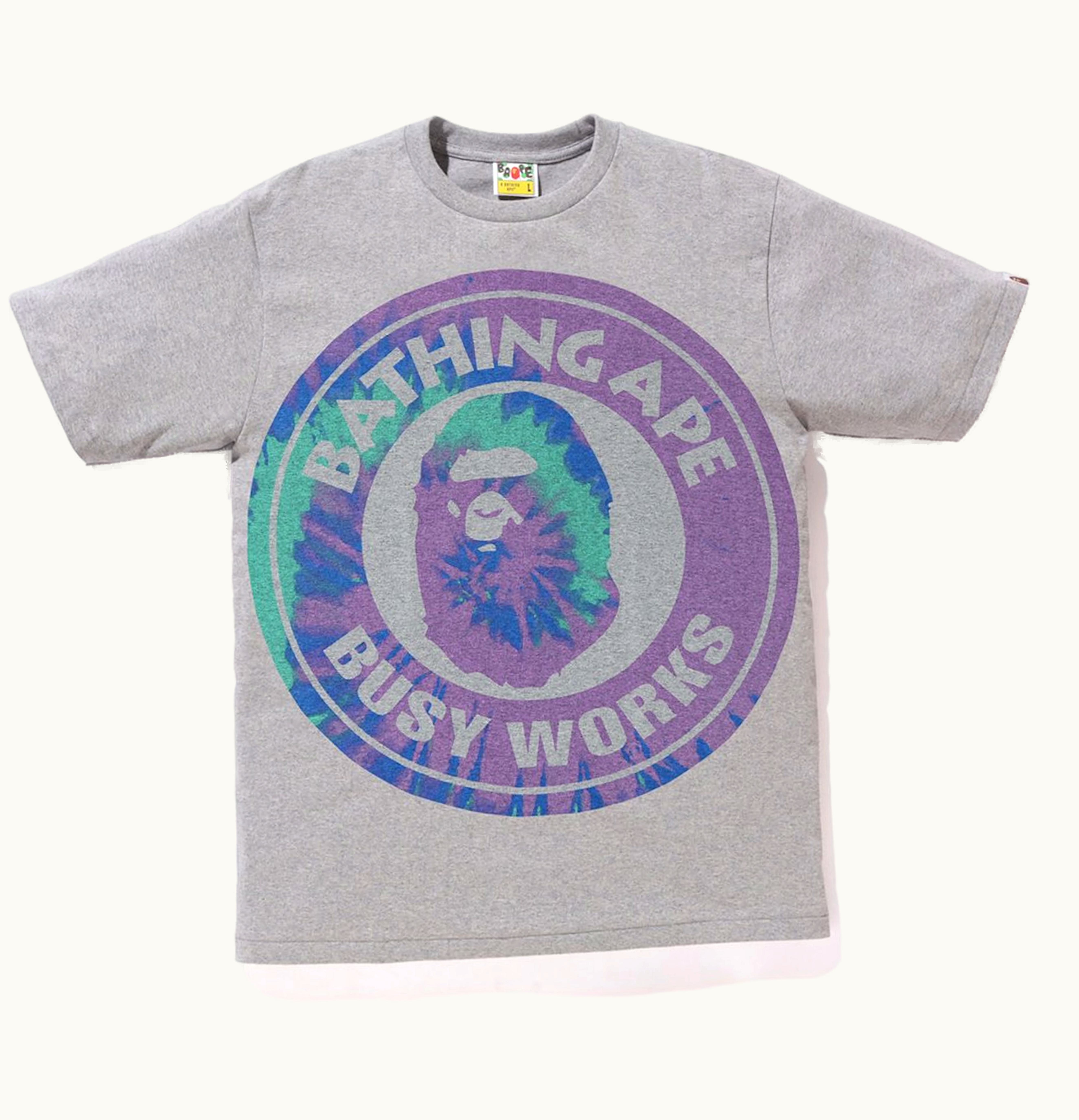 BAPE Pigment Tie Dye Big Busy Works Tee Grey Purple | GLINT