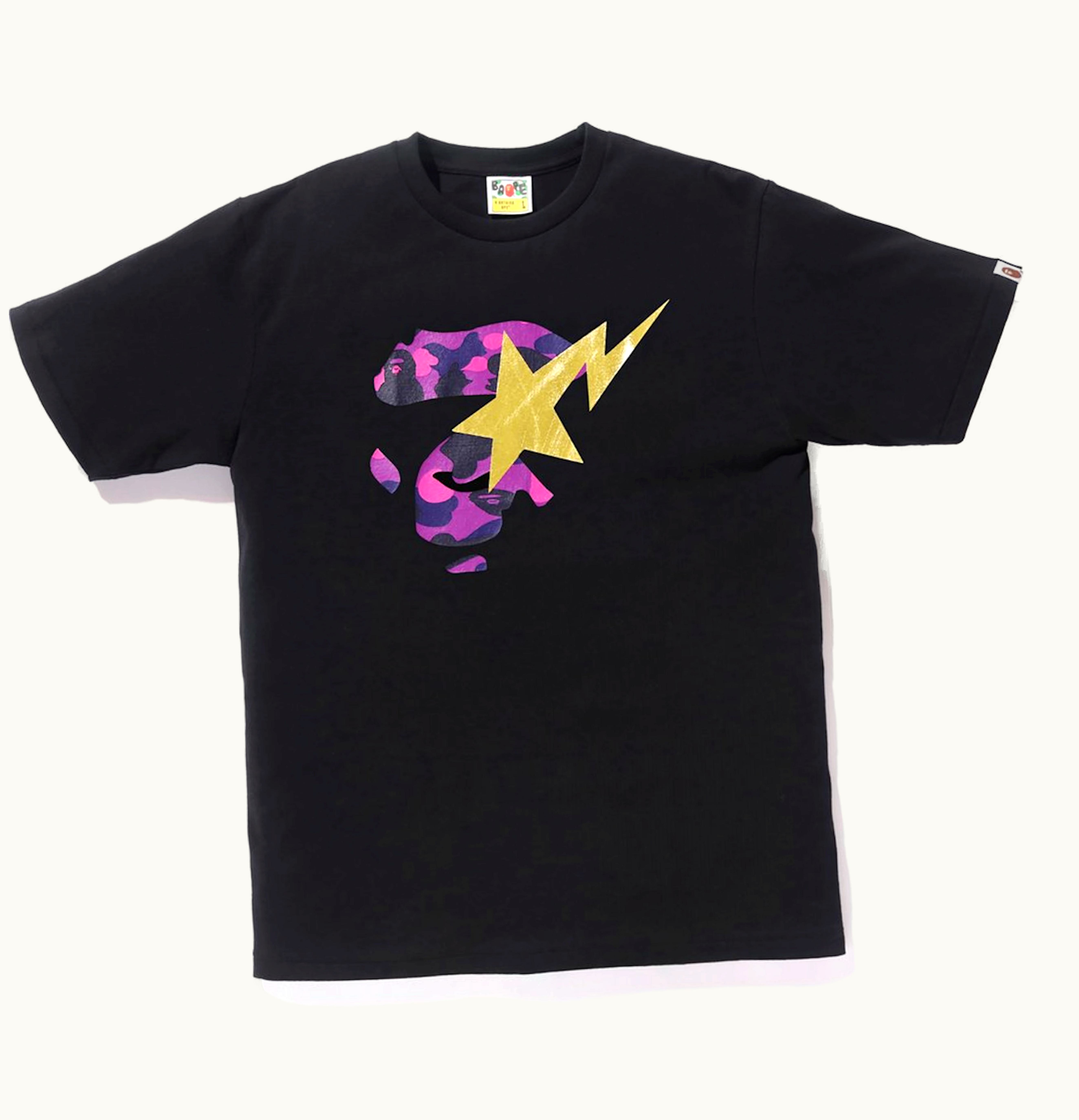 BAPE Color Camo Ape Face on Gold BAPEsta Tee Black Purple | GLINT