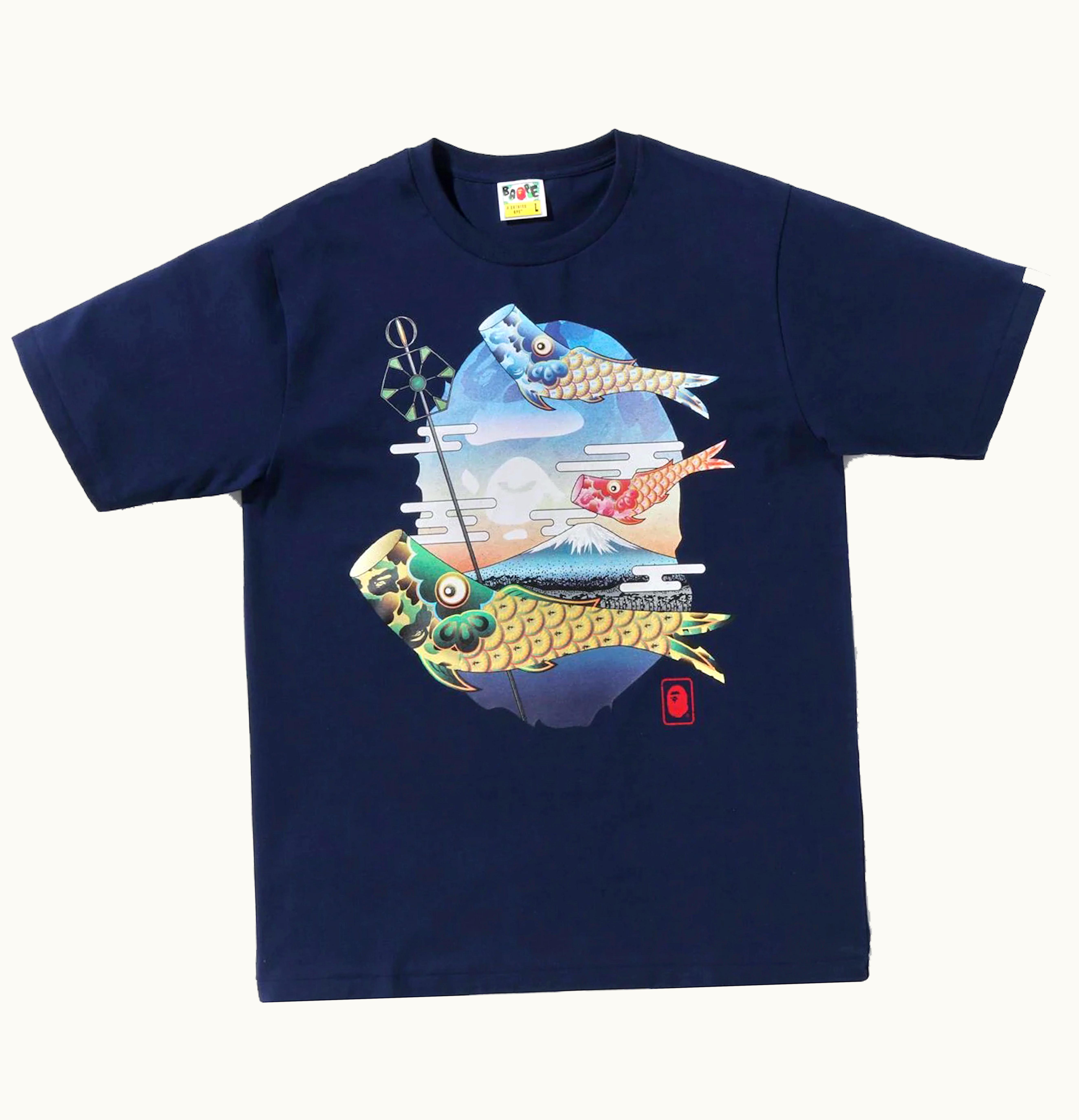 BAPE Koinobori Carp Flags Ape Head Tee SS22 Navy | GLINT
