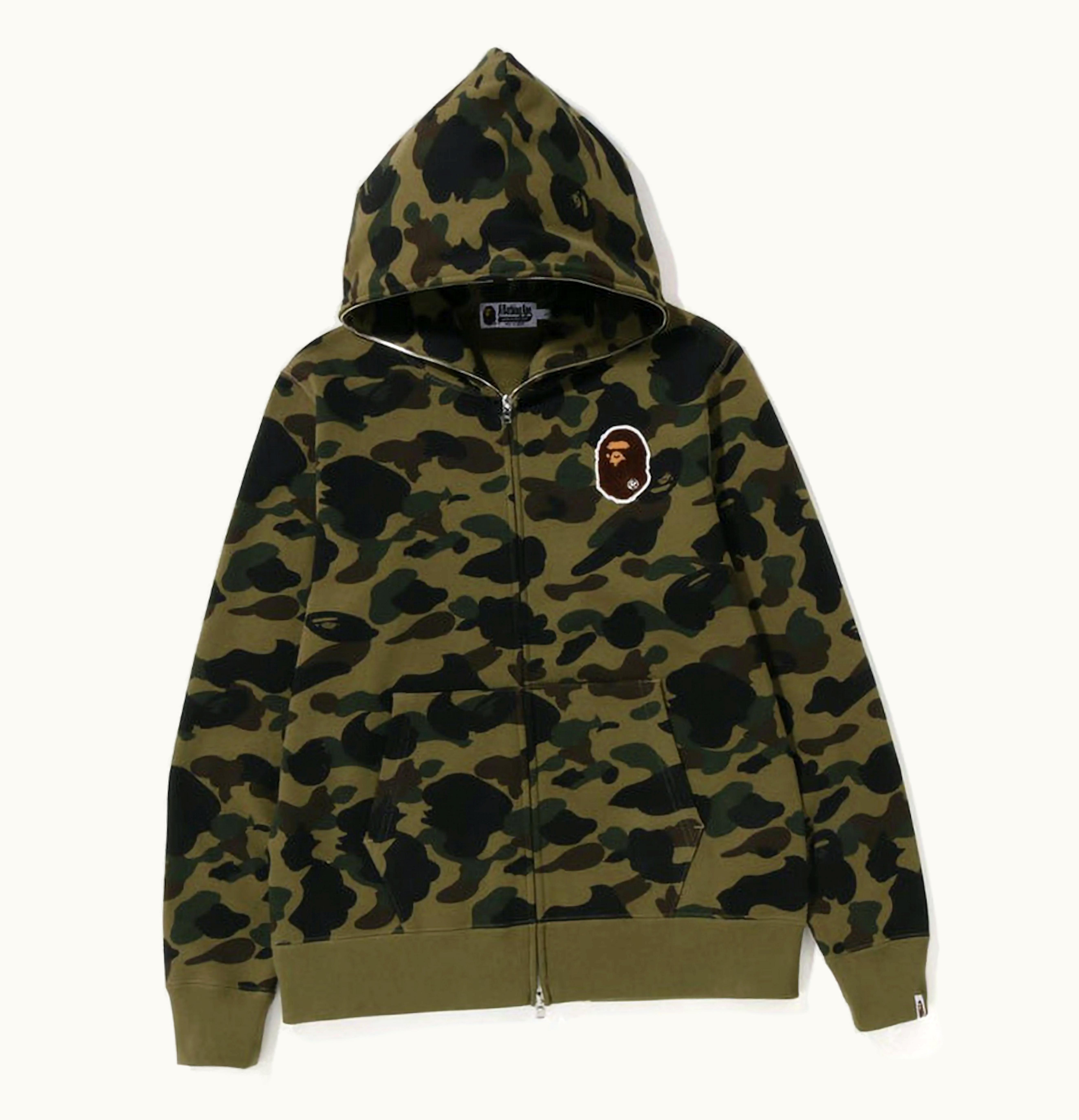 BAPE 1St Camo Ape Head Patched Full Zip Hoodie FW22 Green | GLINT